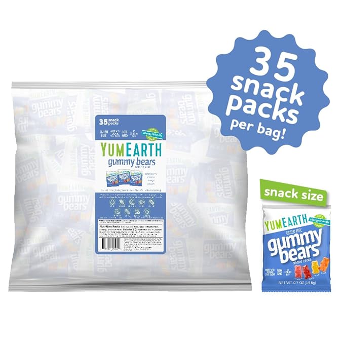 YumEarth Organic Gummy Bears - Fruity Gummy Candy Snack Packs, Gluten Free Snacks for Kids - Allergy Friendly, Non-GMO, No Artificial Flavors or Dyes - Assorted Flavors, 0.7 oz. (Pack of 35)