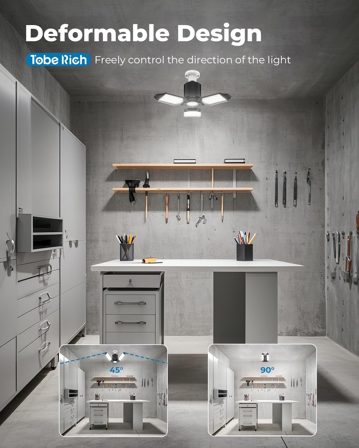 - ๐ฟ๐๐๐ค๐ง๐ข๐๐๐ก๐ ๐ฟ๐๐จ๐๐๐ฃ: Our deformable LED garage lights feature adjustable panels that can be angled up to 90 degrees, allowing you to customize the direction of your lighting to suit your needs. Besides, with a wide-angle and multi- panels design, these garage LED lights provide broad coverage, illuminating even the darkest corners of your garage or workshop