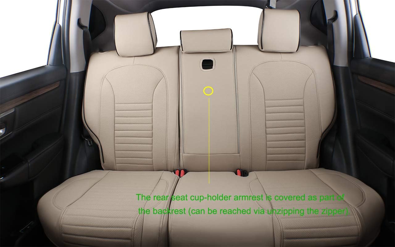 EKR Accord Car Seat Covers for Honda Accord 2023 2024 2025 LX(Rear Row W/Solid Backrest) Leather Car Seat Covers,Waterproof Car Seat Protectors,Trucks Seat Covers Full Set(Beige)