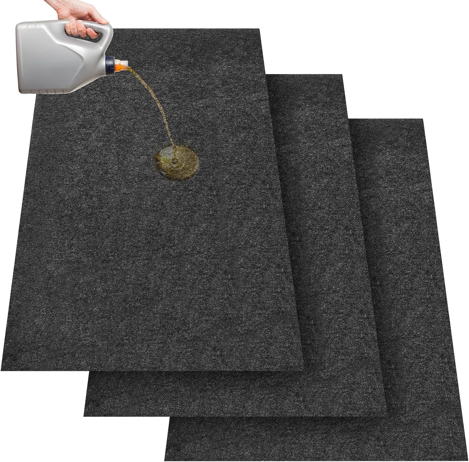 - Trusty and Safe: the garage floor mats are equipped with compact felt construction and moisture proof rubber backing, highly absorbent of oil, water and other liquids, not easy to break or wear