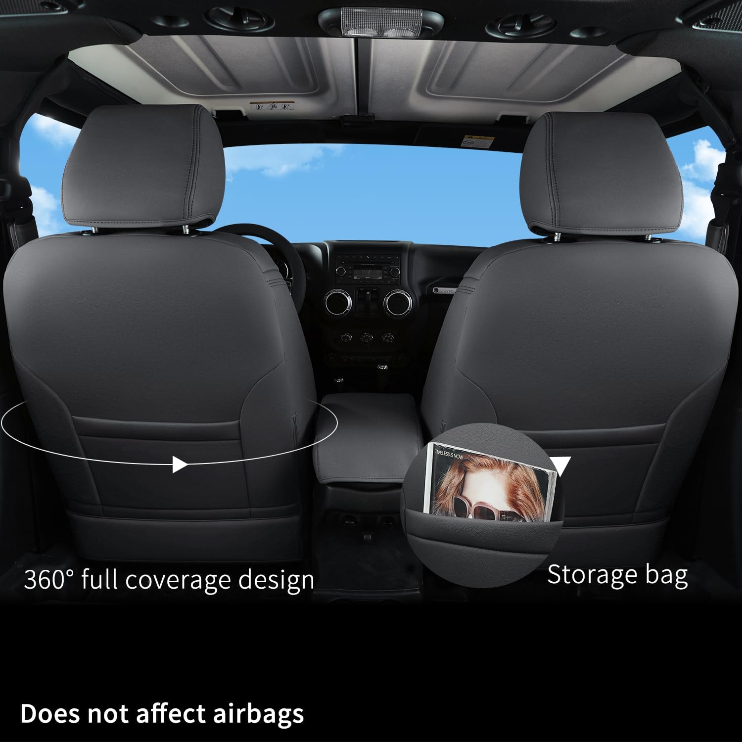 - ăCUSTOM FITă - A full set of seat covers customized according to the original car seat size 1:1, which will fit Wrangler JK 2-Door 2013 2014 2015 2016 2017 like a glove.