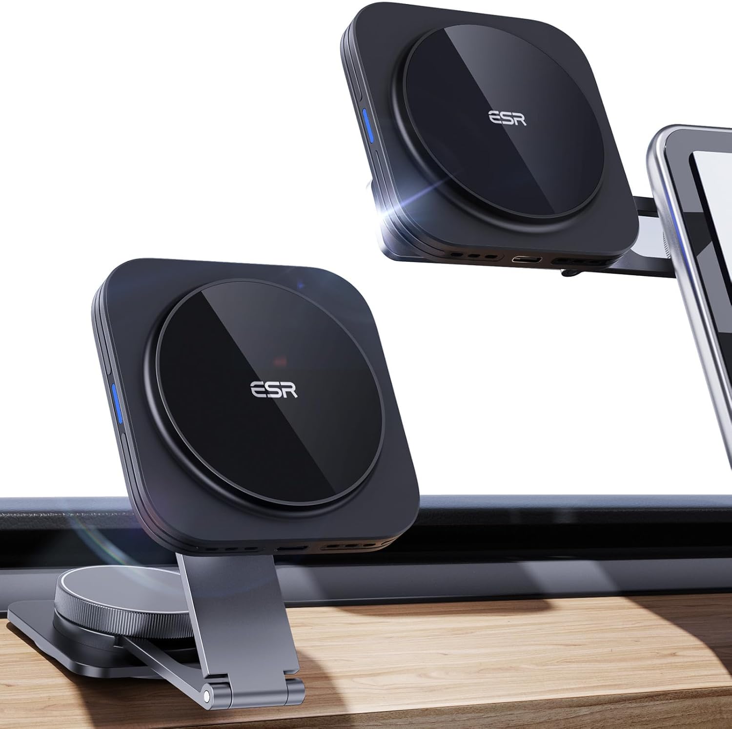 ESR for MagSafe Car Mount Charger, Foldable Dashboard Magnetic Wireless Car Charger for Tesla, for MagSafe Car Charger, Tesla Touchscreen Car Phone Holder for iPhone 15/14/13/12, Strong Magnets, Black