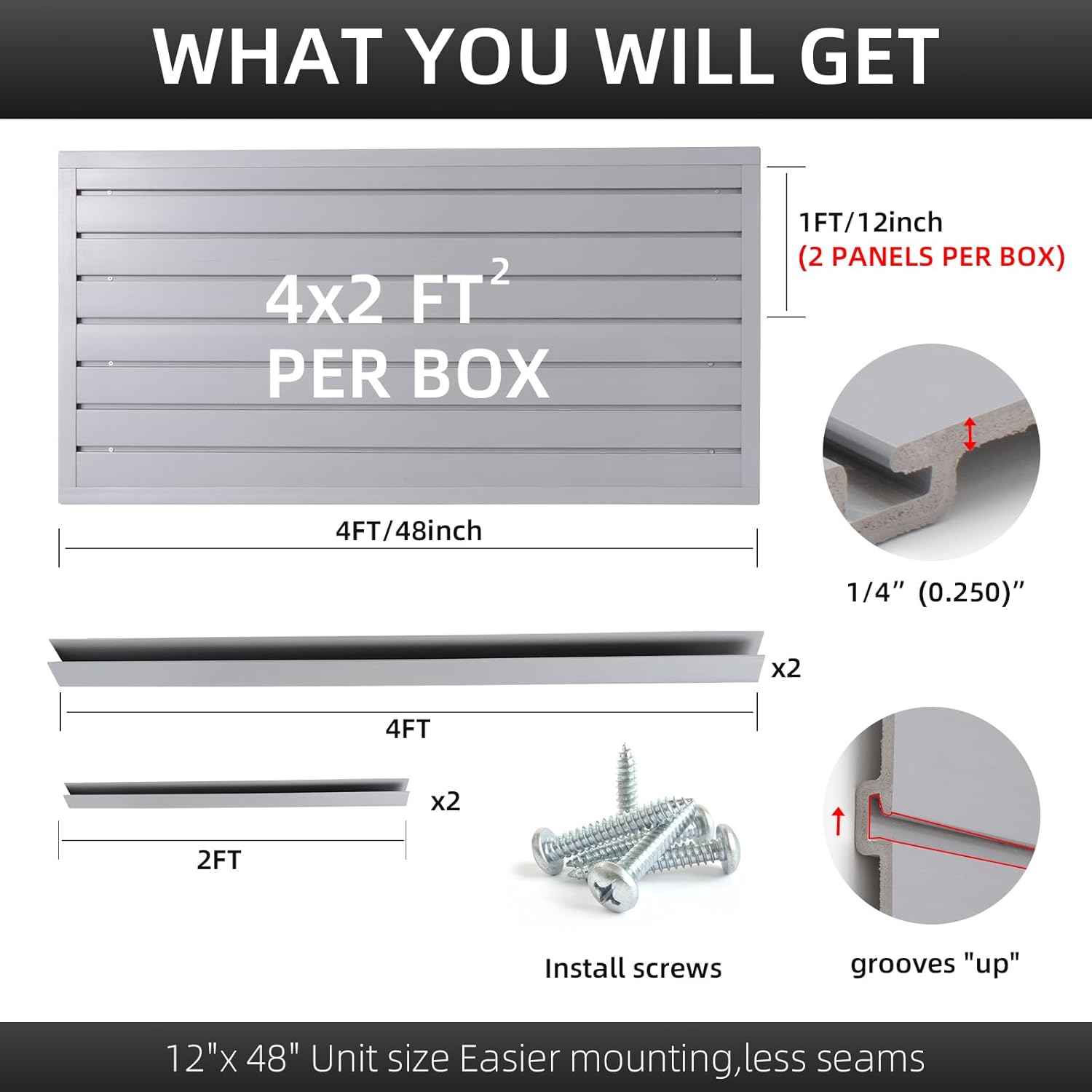 Slatwall Panel Garage Organizer Heavy Duty Wall Mounted, PVC Slat Panels Home Storage System, Tool Organization Peg Board 4ft by 2ft (Gray)