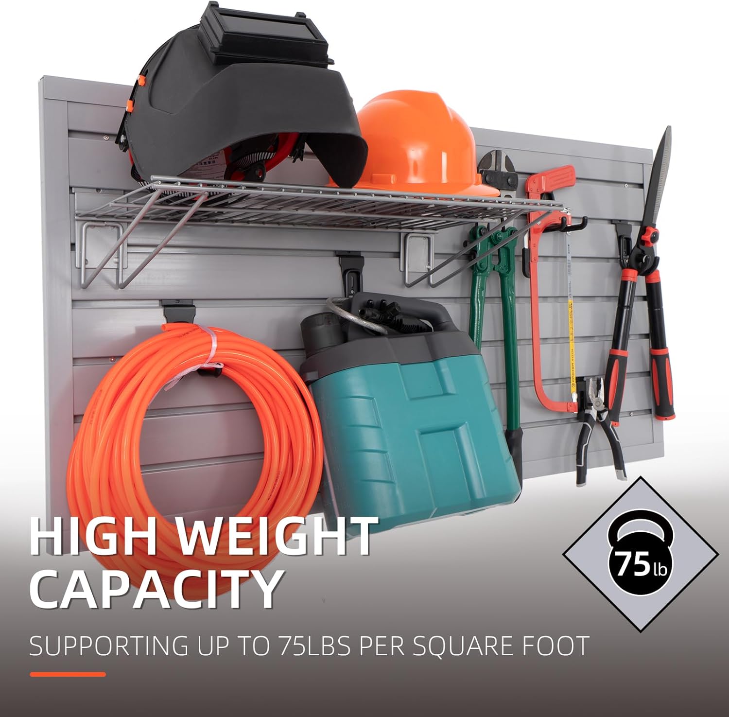 - MAKE FULL USE OF YOUR SPACE: Unleash the true potential of your garage wall organizer for tools with the garage slat wall panel. By making smart use of vertical wall space, you can revolutionize your garage into a seamlessly organized and efficient area. Bid farewell to a messy garage and welcome a meticulously optimized space that maximizes every inch available. Enjoy effortless access to your tools, equipment, and accessories, all while crafting a visually captivating environment.