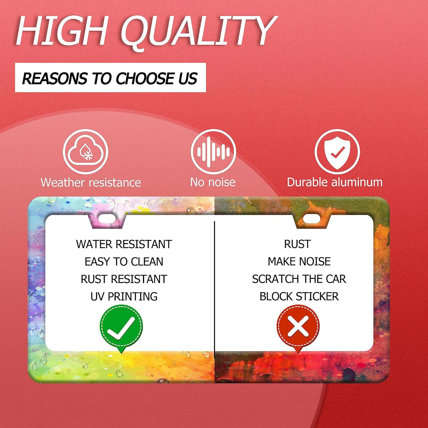 - Design:Use Advanced digital printing Protects license plate frames from Whether it's a car wash, heavy rain or hot weather, it still looks brand new,Let your car still be unique and stylish while driving on the road