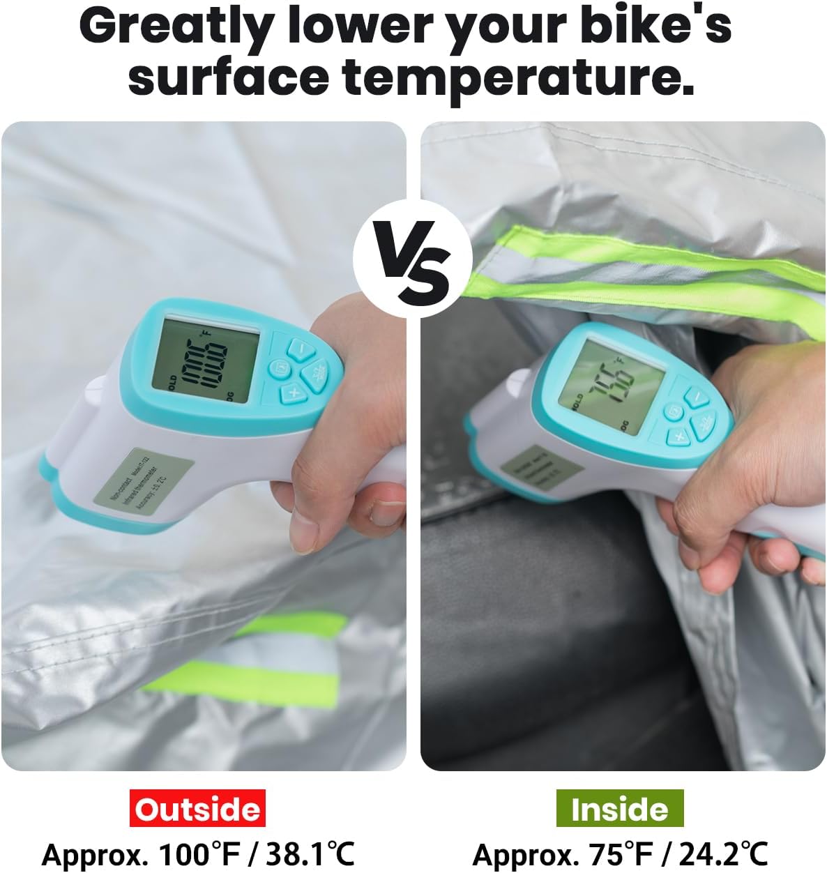 - [ Silver Reflecting Surface ] The silver reflecting outer surface ensures that this outdoor motorcycle cover is able to deflect most of the sun rays, particularly which can cause deterioration of certain materials on your bike.