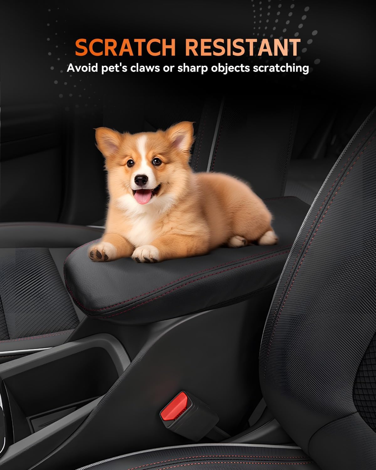 - [Excellent Scratch Resistance] The car Armrest Cover mat is made of high quality PU microfiber leather, thick enough to keep out pet paws, dust and sticky fingers. The surface is waterproof, wear-resistant and durable, breathable, light weight and easy to wipe clean of dirt.