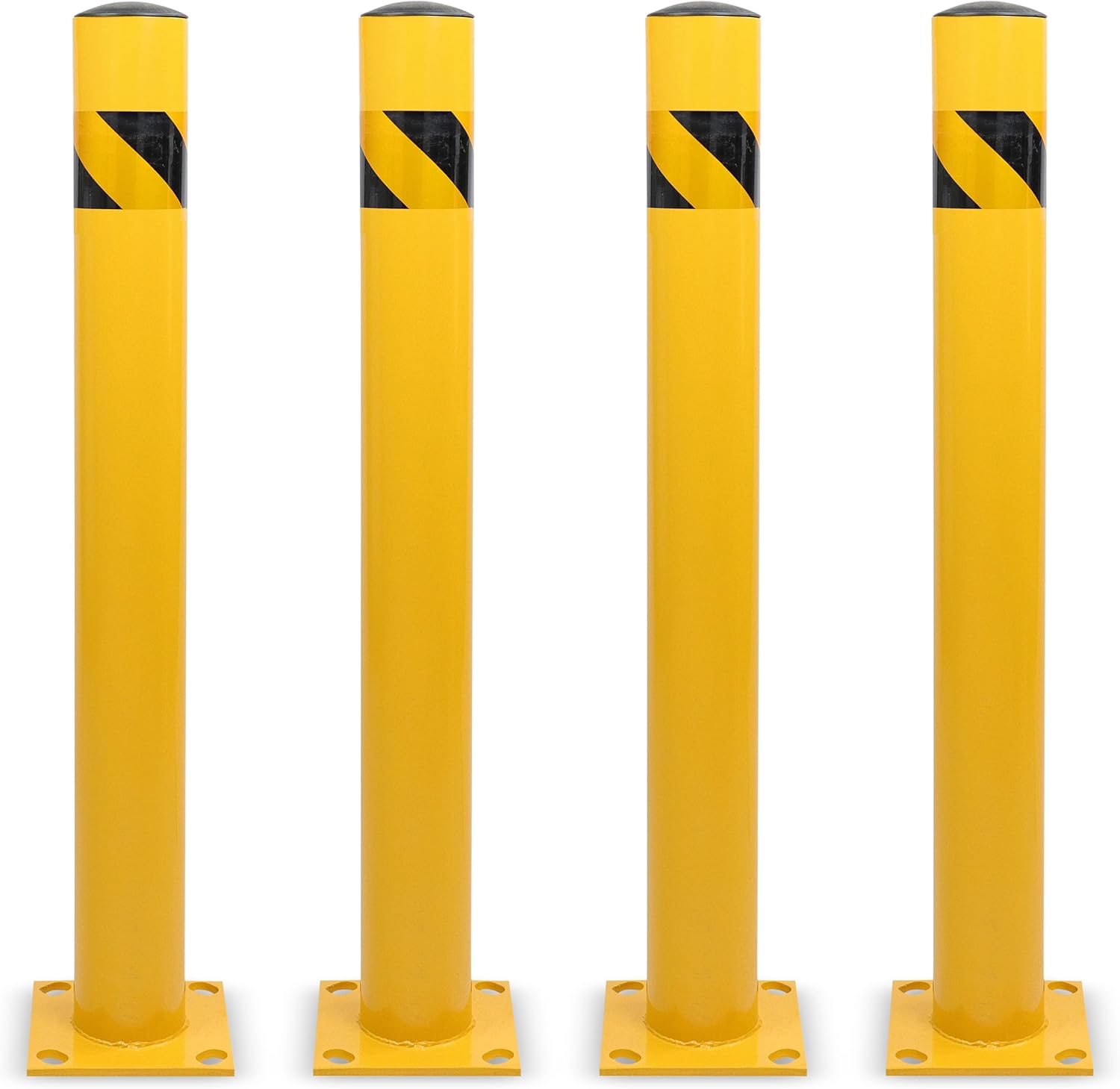 - [Enhanced Visibility]: Powder-coated bright yellow finish; Tops of our bollards are wrapped in 3in (7.6cm) black and yellow Department of Transportation compliant reflective tape for nighttime visibility