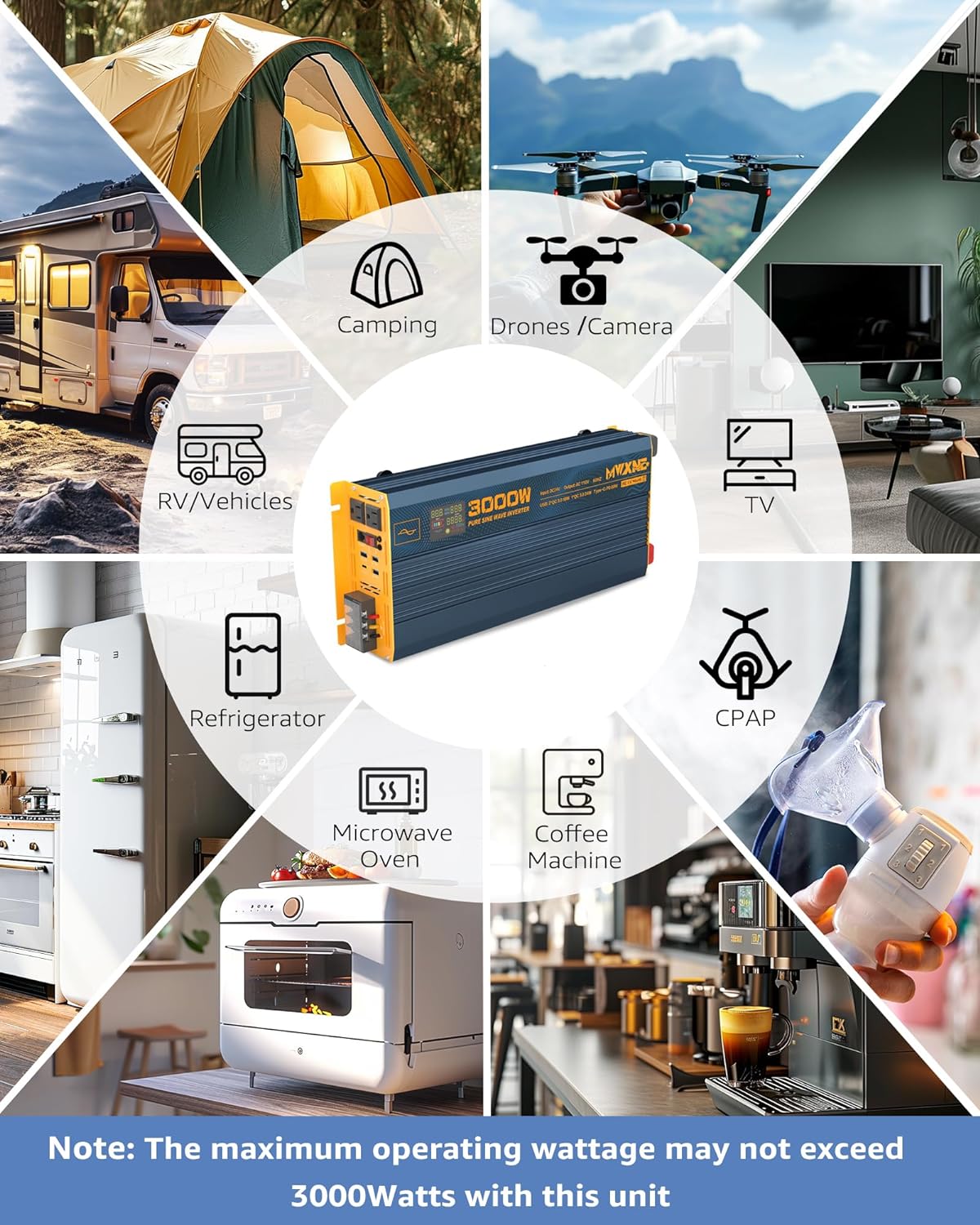 - 【24 MONTHS WARRANTY & FULL SET】 MWXNE Team offers 24 months warranty. Package includes 1x 3000W Pure Sine Wave Inverter, 1x User Manual, 2x Battery Cables, 1x Wireless Remote Controller, 1x Wired remote controller, Some Fuses, 1x Spanner, 1x Earth Wire. We provide 24/7 customer service. Please contact us by email if you have any question.