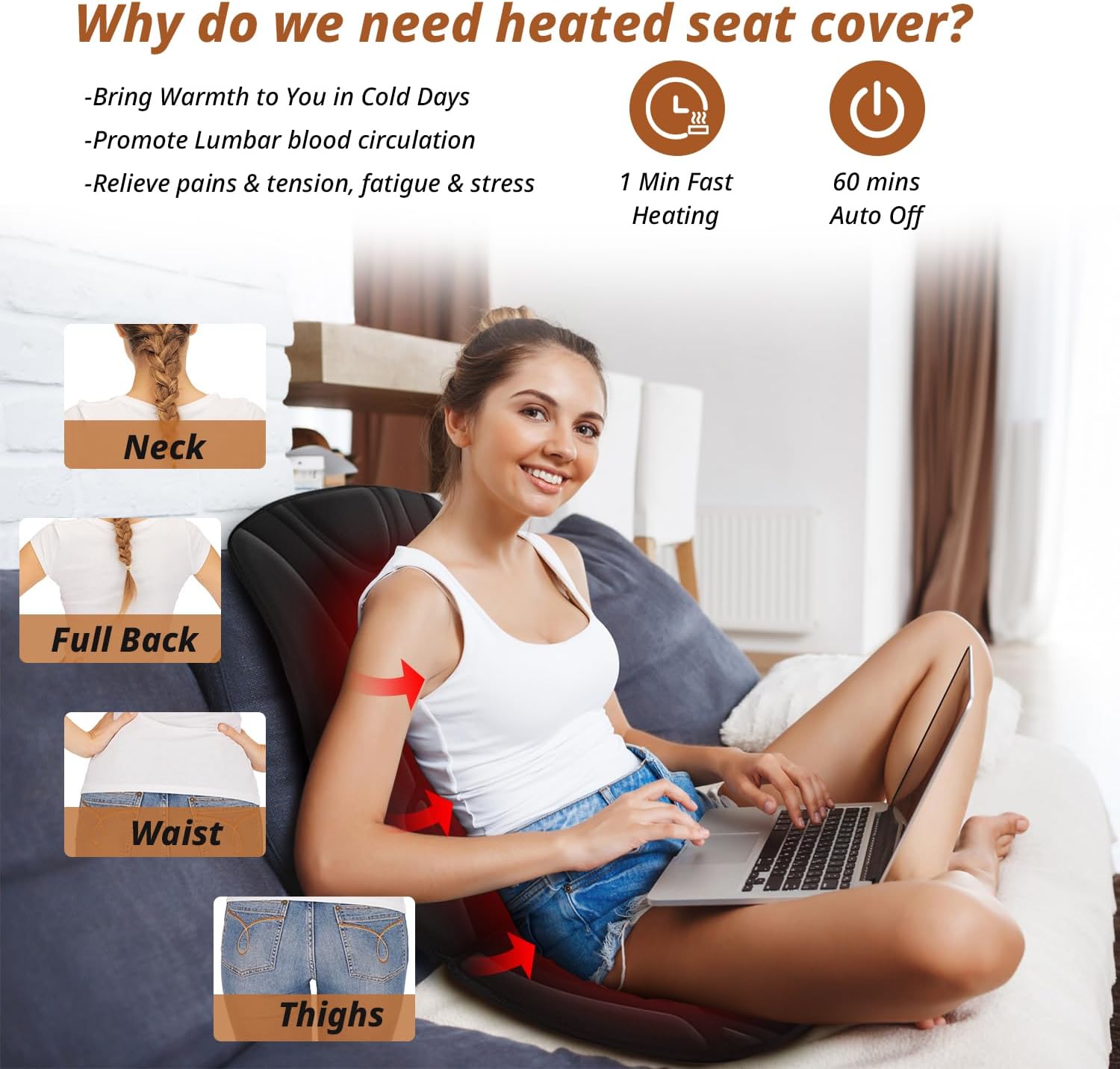 - 【Feel the Cozy Warmth】: Our seat cushion able to warms up in a short time, providing cozy warmth for your full back,hips and thighs, with high quality materials bringing you best exprience for your winter.