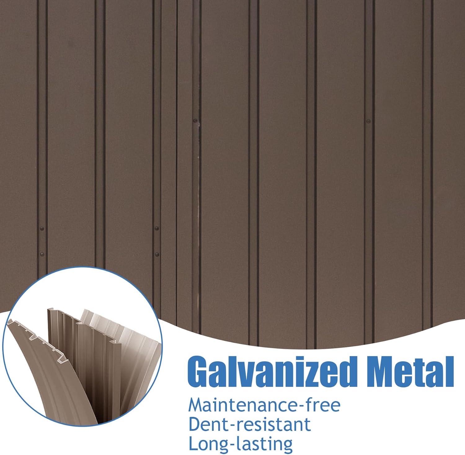 - [High-quality Material] The patio storage cabinet uses thicker galvanized steel and more durable framework for safe and all-weather purposes. The material is rust-resistant and could be UV-resistant under the hot sun. Overlapped wall panels features with waterproof and moister-resistant, worry-free for all weather condition use.