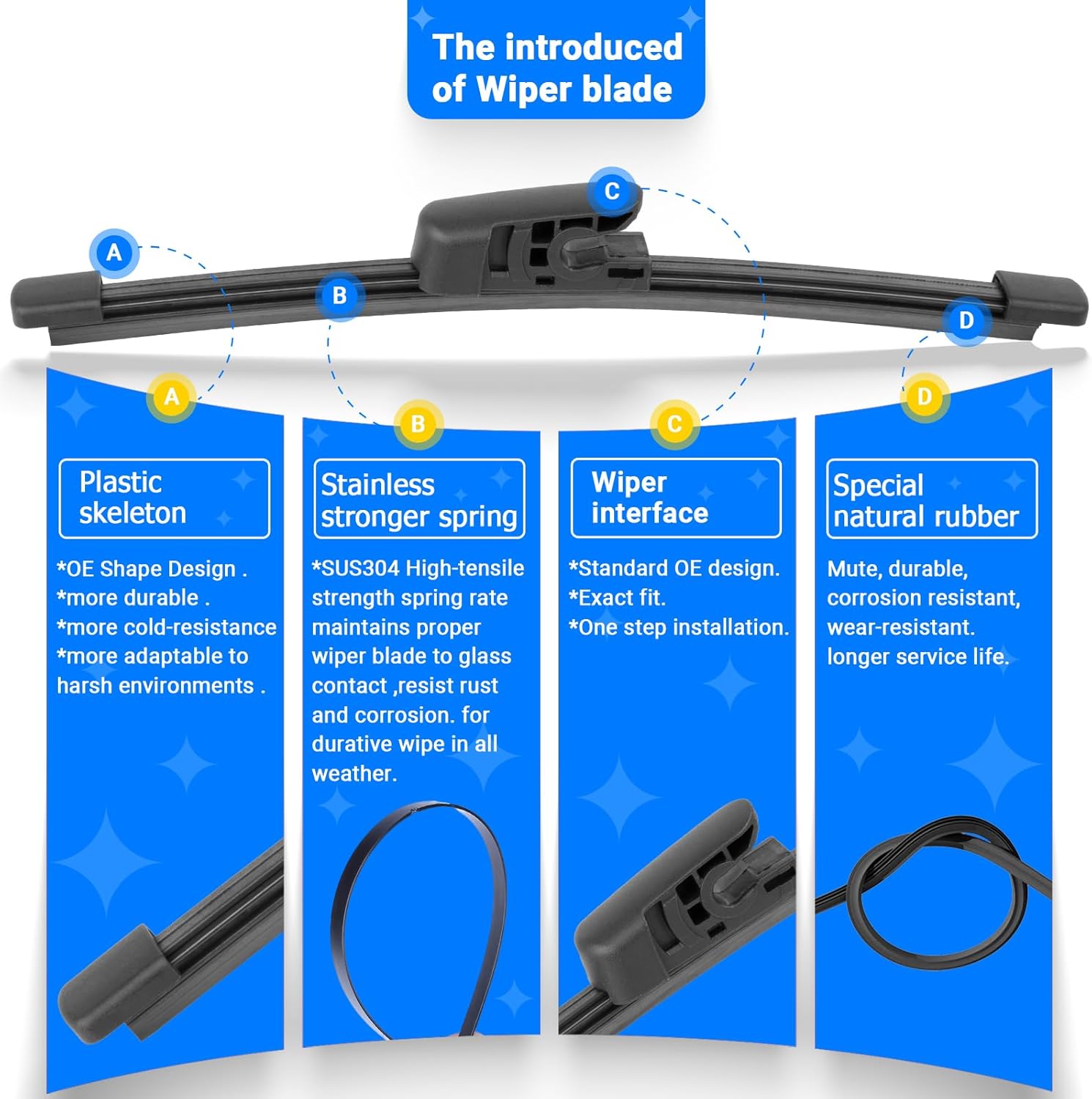 - {WIPER PERFORMANCE}: Natural rubber material making sure the wiping is the best, quiet wiping without judder or squeaking, resistant and a long service life.
