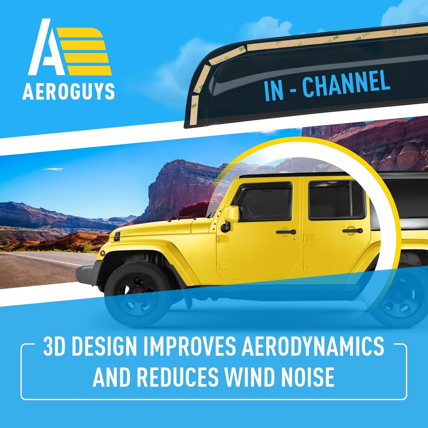 - No Tools Needed, Quick and Easy Assembly β These rain guards are very easy to fit. IN-CHANNEL INSTALLATION provides perfect fit for your SUV. Just slip it onto your SUVβs window and your job is done within minutes. There is no drilling or no tools required. Be sure that AEROGUYS window deflectors are water resistant, sun protective and will not bend, break or crack regardless of the weather conditions.