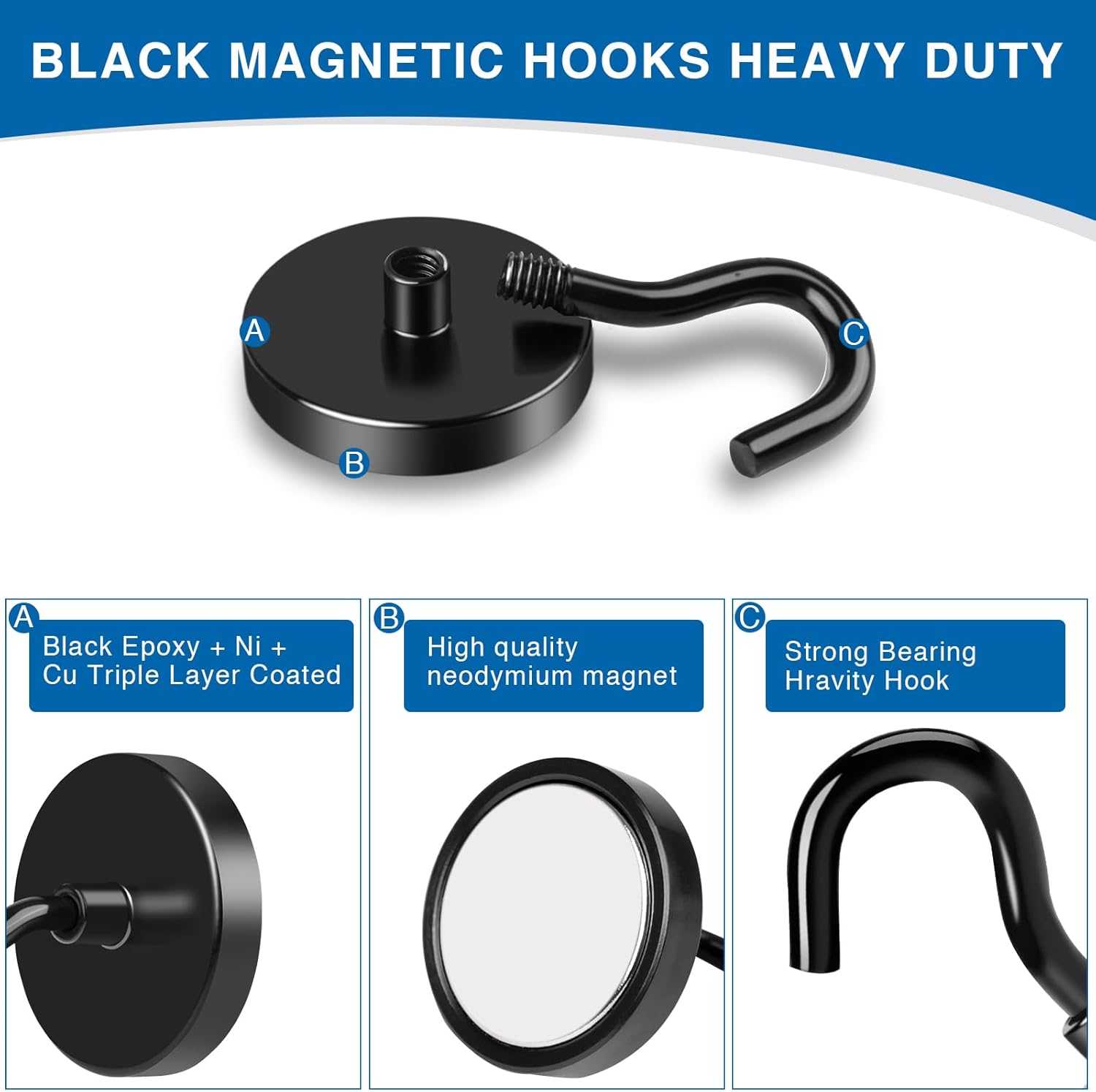 - 【HIGH QUALITY COATING】Magnetic locker hooks are coated with triple layer of Black epoxy+ Nickel+ Copper, which greatly enhances small magnetic hooks corrosion resistance. The layer of magnetic coat hooks not only provides a shiny and rust resistant surface, but also helps prevent the strong magnets with hooks from breaking or cracking.