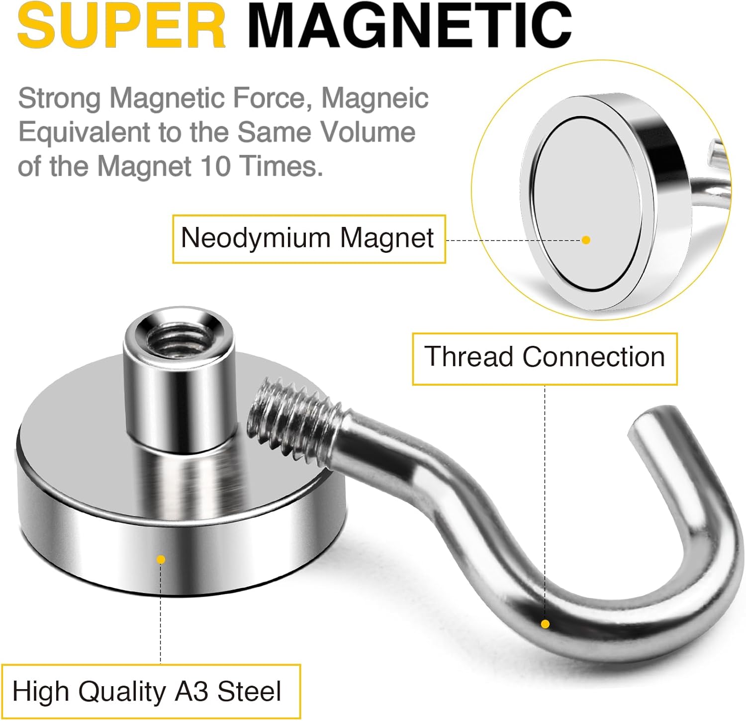 - 【Excellent Three layer Coating】Magnet hooks heavy duty are plated with 3 layers of protective coatings - Nickel + Copper + Nickel (Ni-Cu-Ni), which can greatly resist rust and corrosion, making magnetic hooks ideal for long term use.