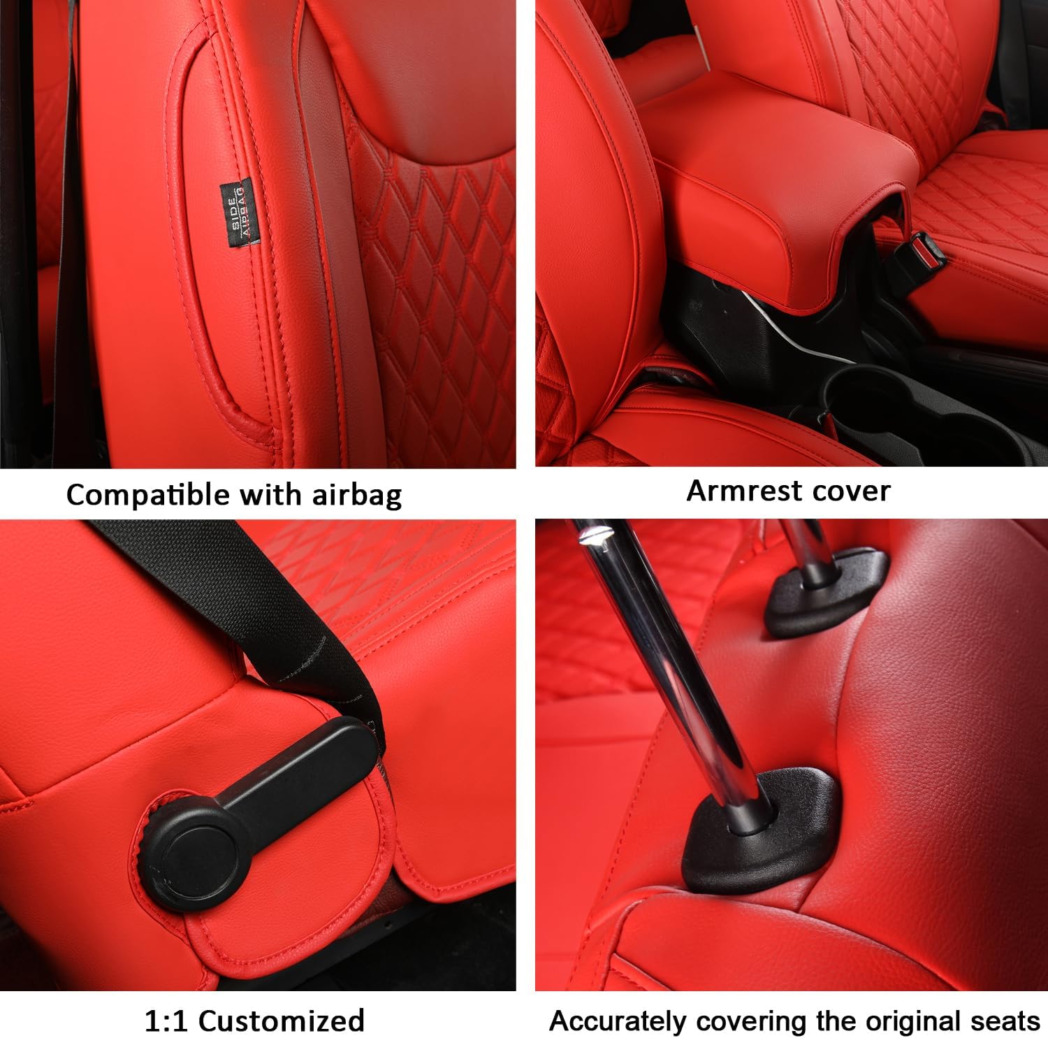 GIANT PANDA Customized Front Car Seat Covers for Jeep Wrangler JK 2/4 Door Sahara Sport Rubicon Unlimited Altitude 2013 2014 2015 2016 2017,Faux Leather - (Red)