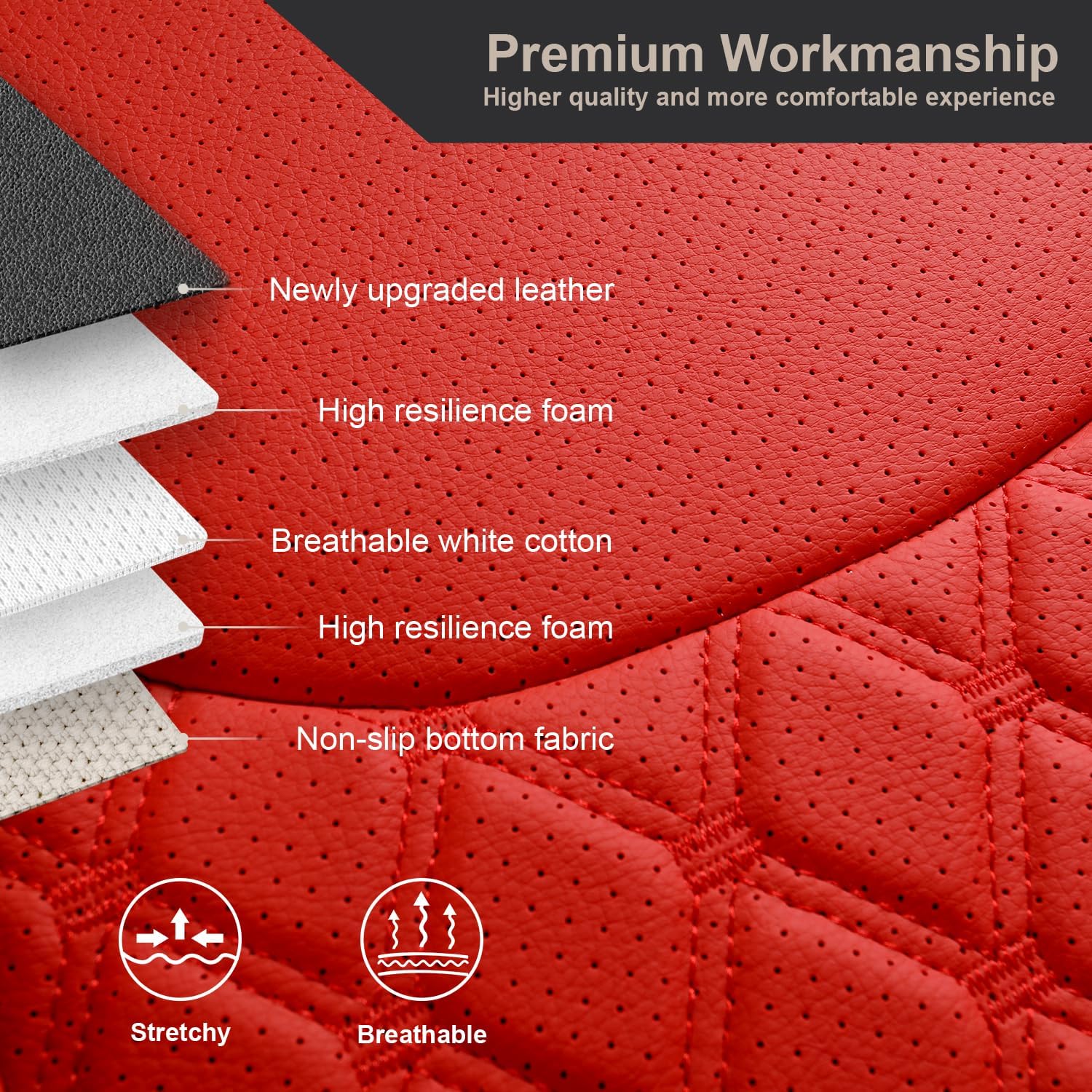 - ăMATERIALă - These car seat covers are made of soft faux leather, which is comfortable to the touch, wear-resistant, waterproof and easy to clean.