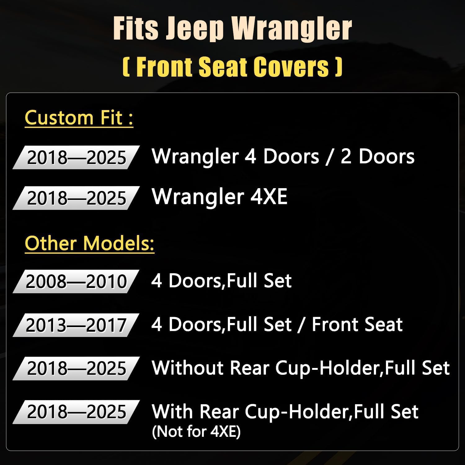 - ăCUSTOM FITă - Front seat covers customized according to the original car seat size 1:1, which will fit Wrangler JL 2/4 Door 2018 2019 2020 2021 2022 2023 2024 2025 like a glove.