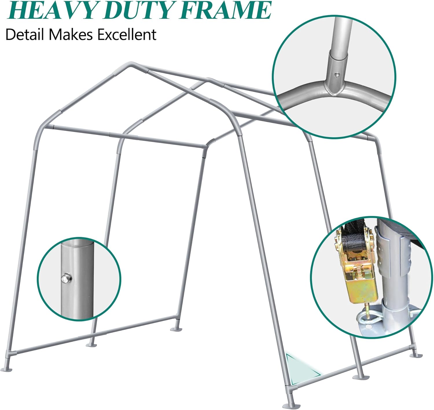 - 🧰MULTIPLE USAGE: The Heavy Duty Storage Tent can be used as Bike sheds, Tool sheds, Motorcycle Shelter or Storage room for your backyard, garden, pool. It can keep your space environment neat and tidy