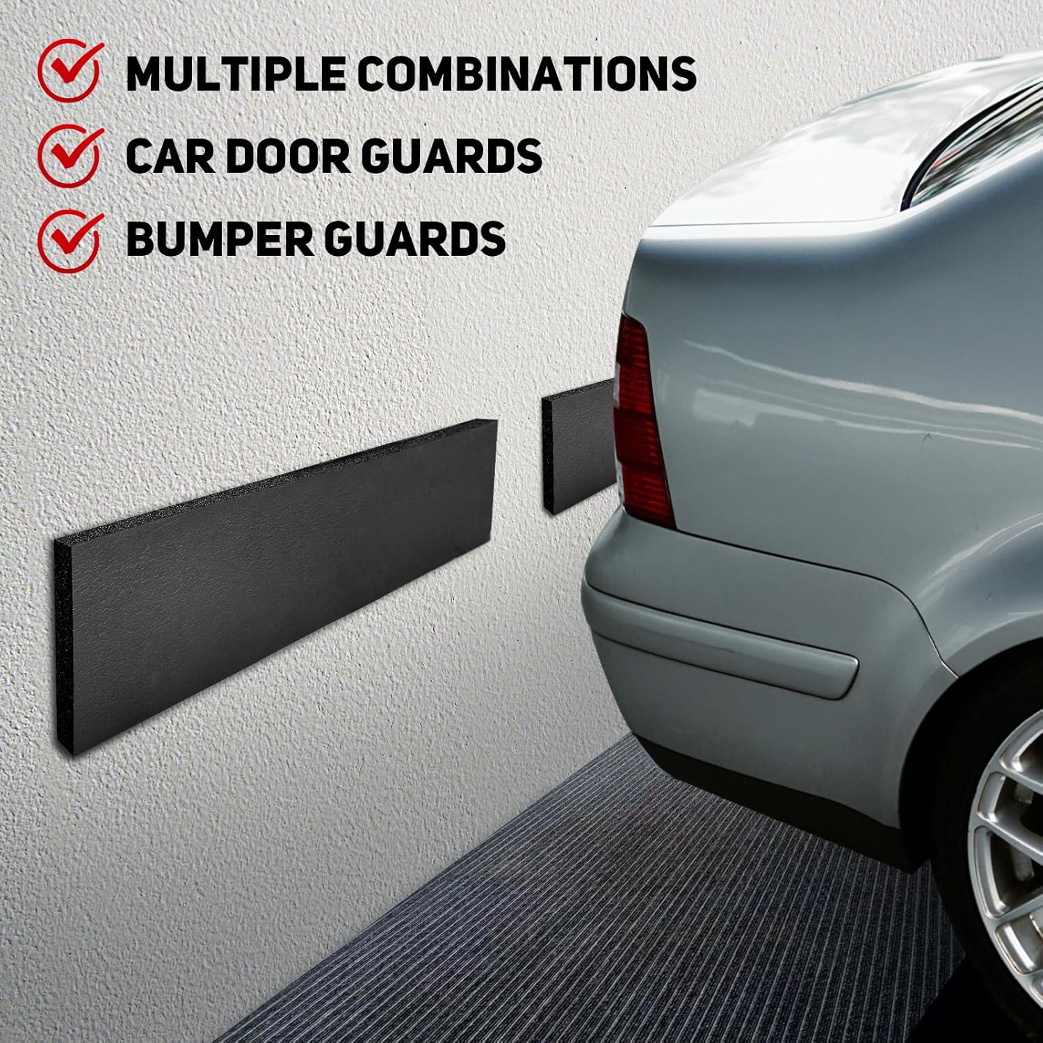 - Great Protection & Impact Absorption β Each strip size is 17.5"*4"*0.6". The 0.6" thick foam can perfectly absorb any impact , preventing damage from any potential impacts when parking in the garage.