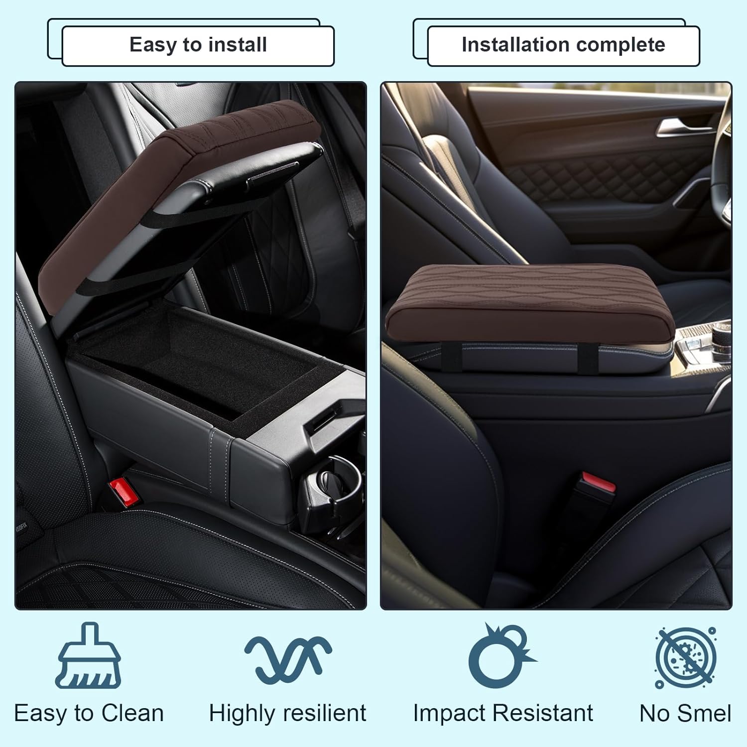 • Easy to Installation and Clean: No tools required for installation โ€” simply slip it on for an instant upgrade to your vehicle armrest cushion. Waterproof armrest cushion is stain-resistant and easy to clean. Simply wipe away spills, dirt, and stains with a damp cloth, keeping your premium armrest cover looking brand new and ready for use