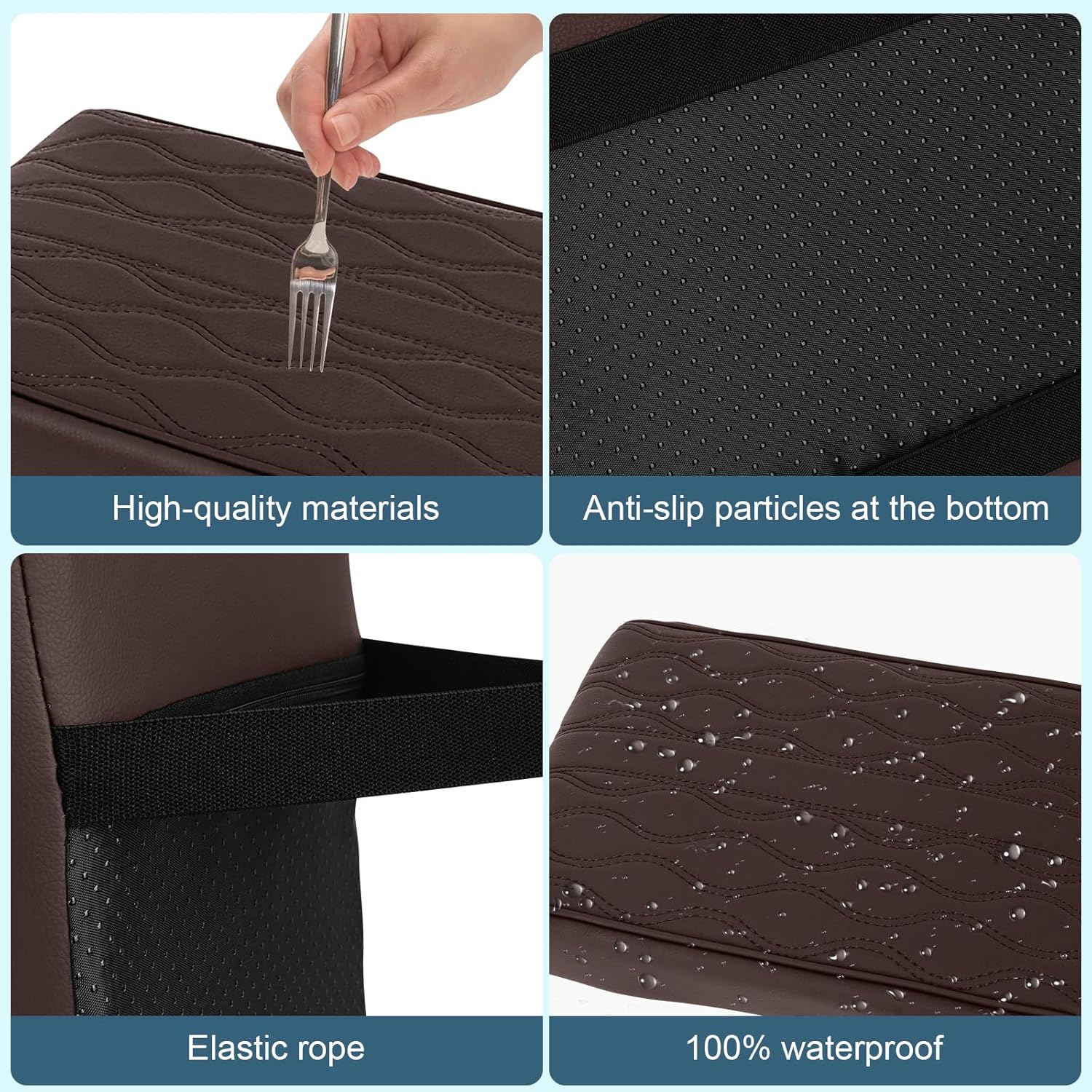 • Durable & Waterproof Leather Cover: Made with high-grade, waterproof leather, this cushion resists wear and tear, Protecting your center console cover from damage by pets, sharp objects and sunlight while maintaining its sleek appearance. The leather armrest protector ensures your vehicleโ€™s interior stays pristine