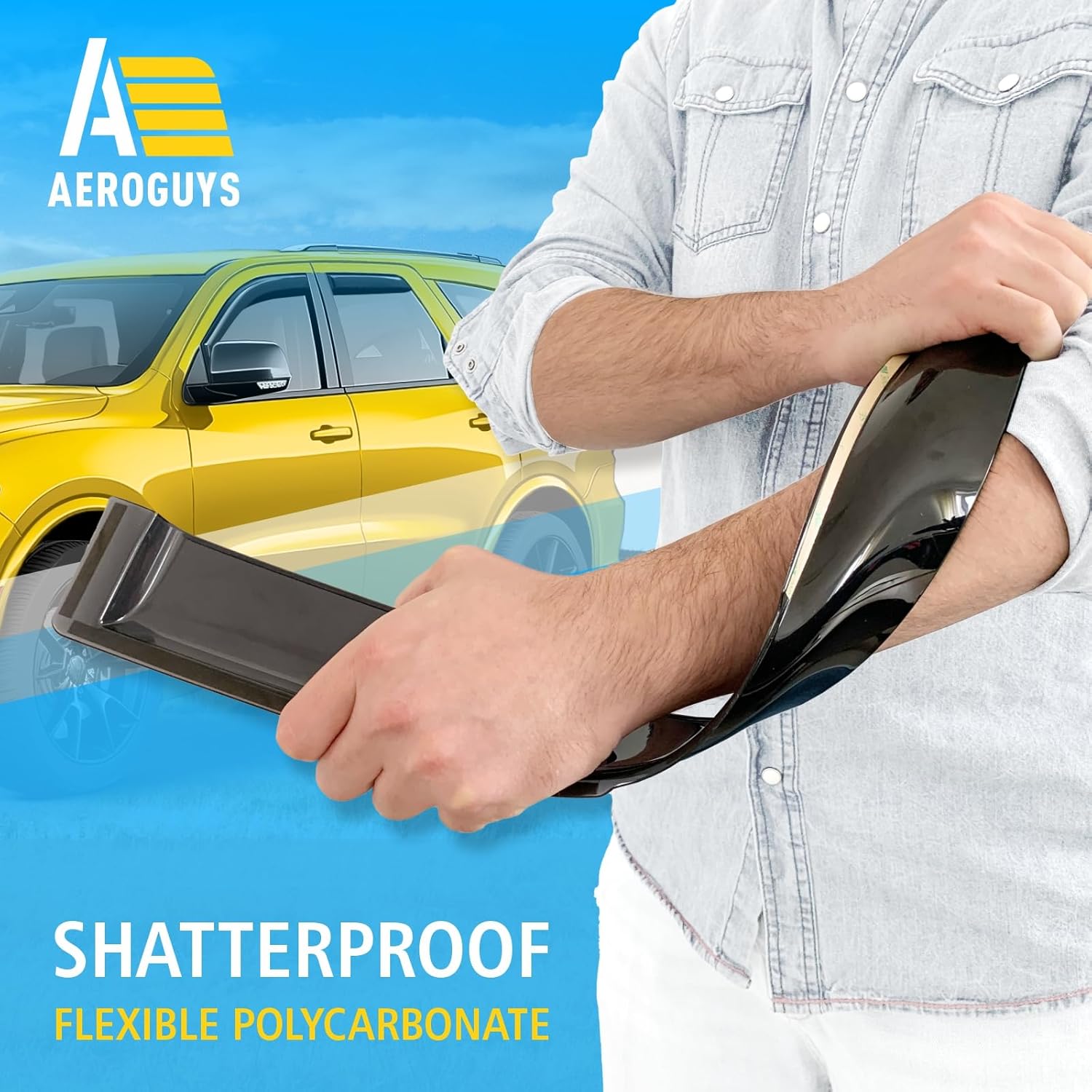 - Incredibly Durable AEROGUYS Auto Window Deflectors β They are made with strong and tough polycarbonate which is clear and scratch-resistant. They also provide UV protection making your ride more comfortable under all weather conditions.