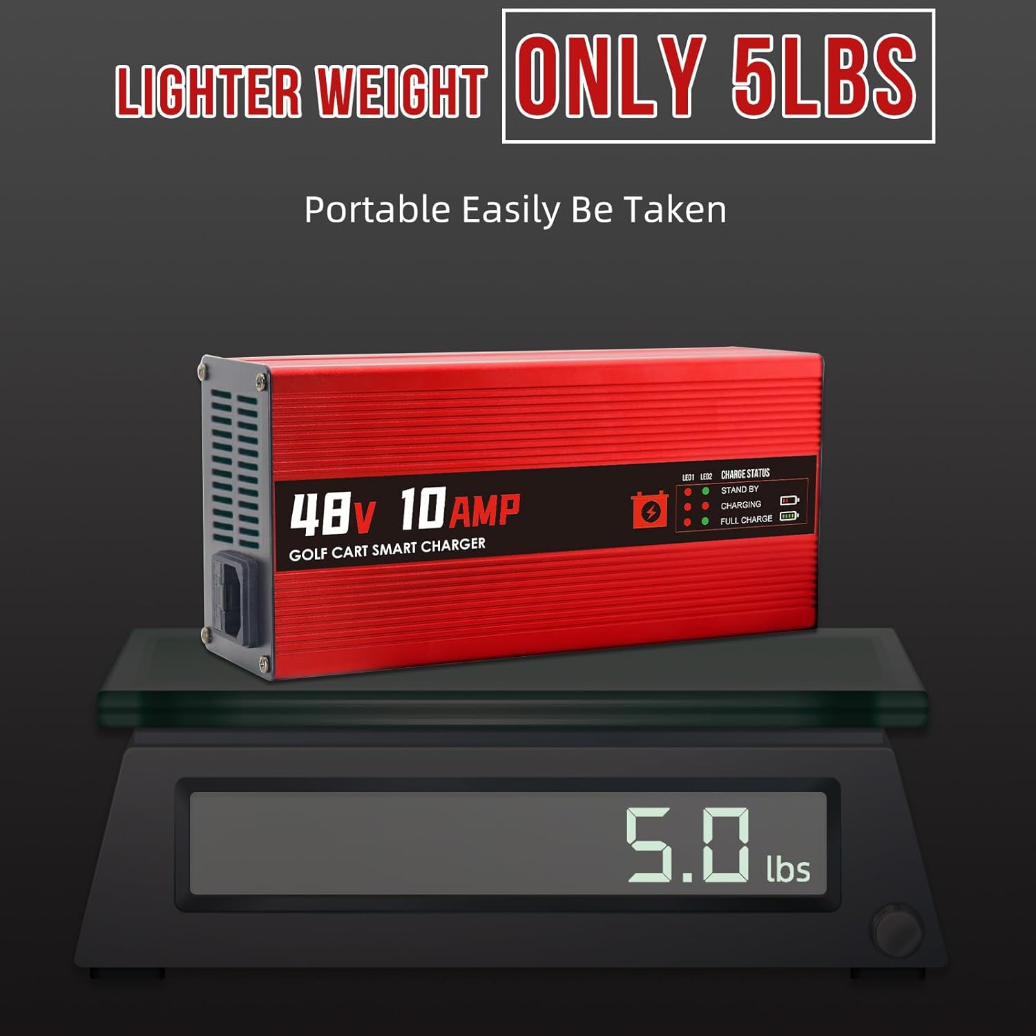 - 【PORTABLE & LIGHT WEIGHT DESIGN】 - Designed with convenience in mind, the smart charger weight in at only 5 lbs, the light weight charger can easily be taken with you. It is constructed with a durable die-cast aluminum alloy casing providing exceptional durability.