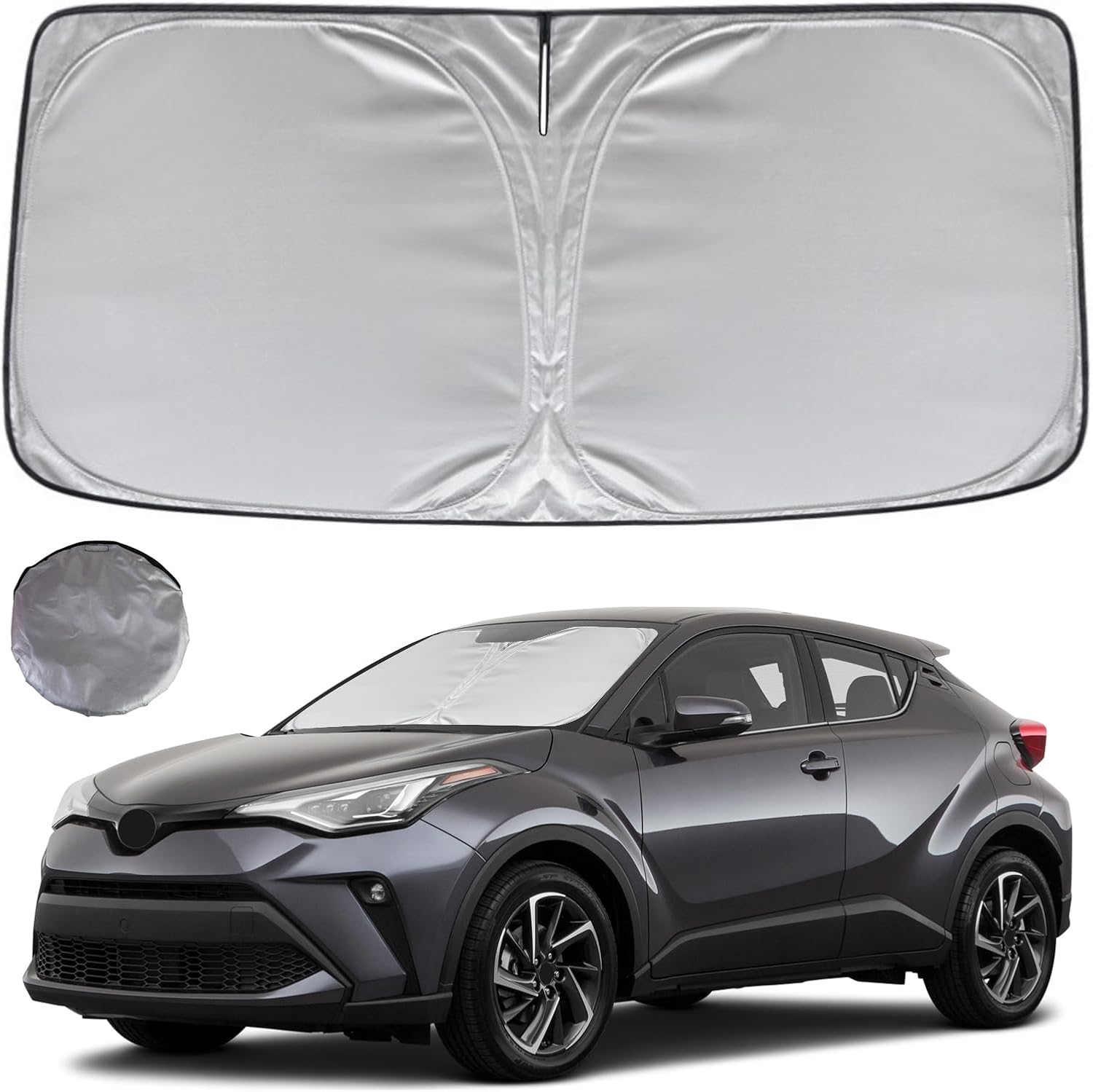 - KAYZT windshield sun shade is precise custom fit for 2018 2019 2020 2021 2022 2023 Toyota CHR, Thoroughly covers every corner of the windshield, Tailored to accommodate rear view mirror, Ensuring a seamless and snug fit without obstruction, Must have car accessories for CH-R