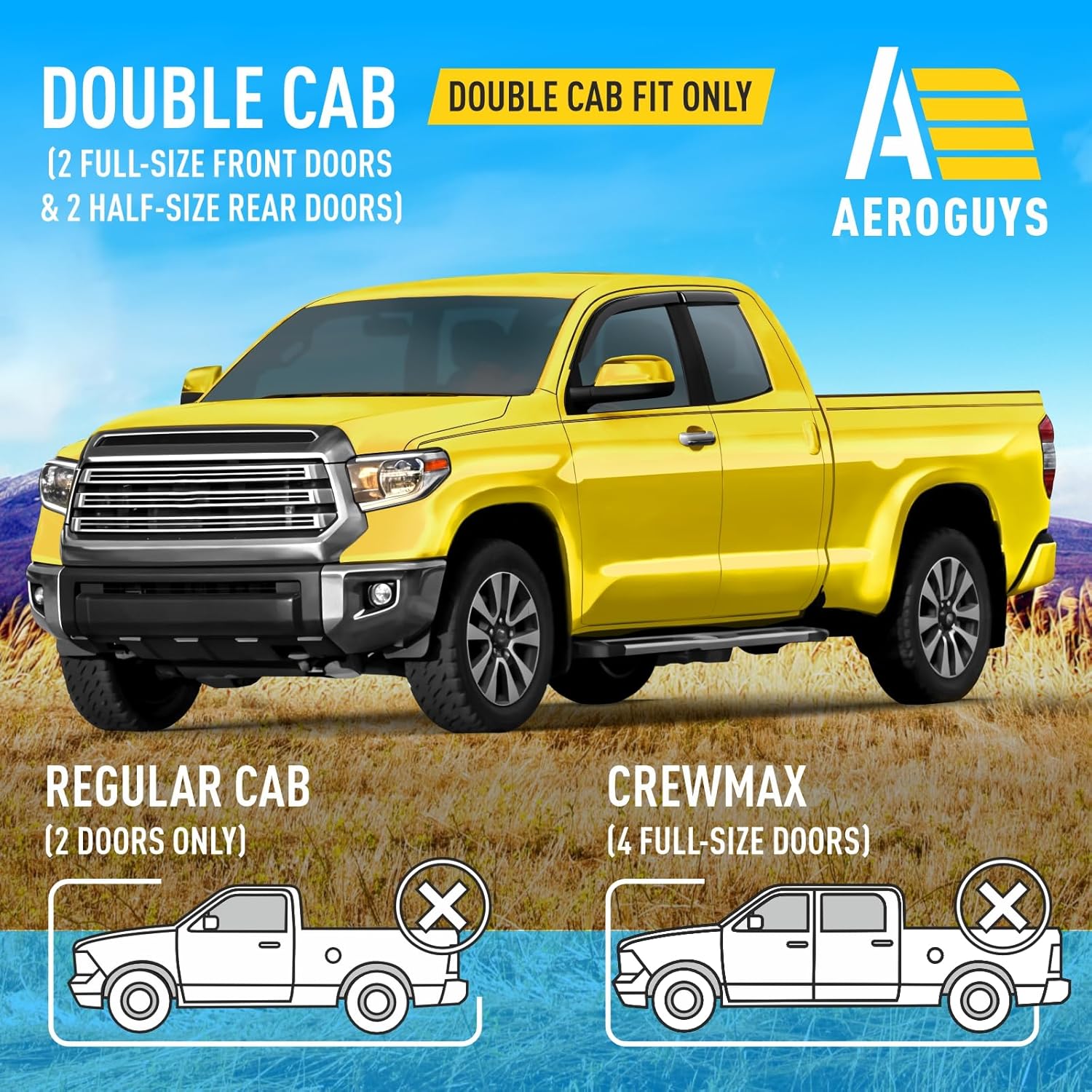 - ATTENTION!!! These high-quality automotive window rain guards CUSTOM FIT only for Toyota Tundra 2007-2021 Double Cab.