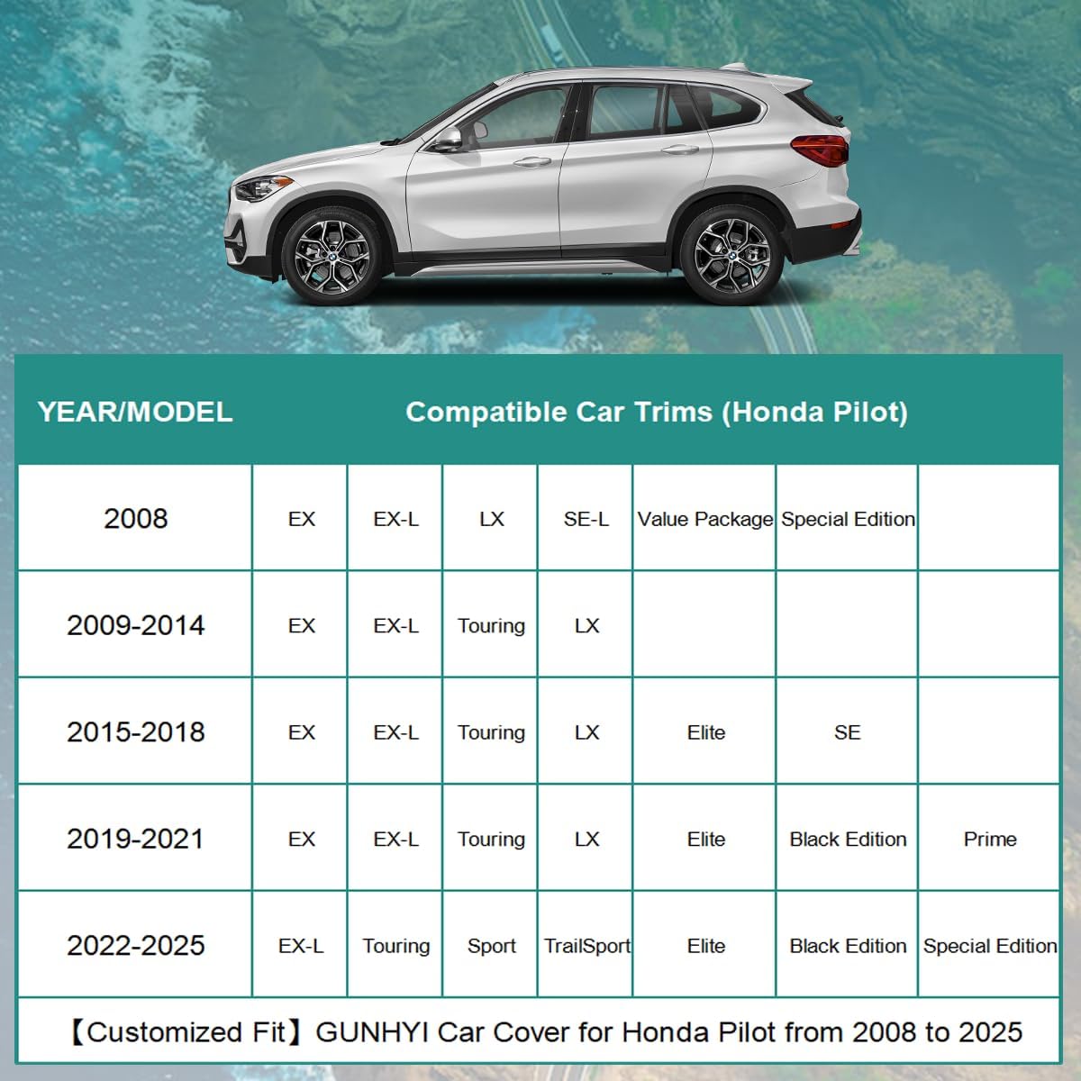 - 【Compatible with】This Full Car Cover Custom fit for Honda Pilot from 2008 to 2025. Comes with a microfiber towel that you can use to clean your car, because if there is sand on the surface of the car before use, it may damage the paint.