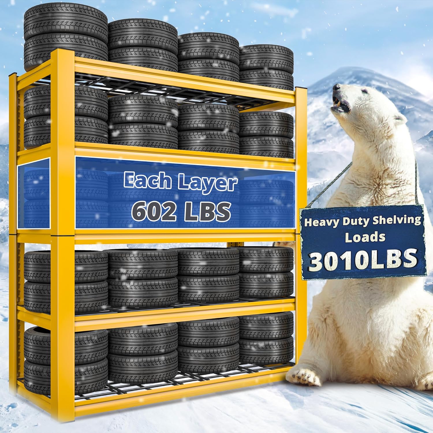 - 【3010LBS Extremely Sturdy】This garage shelving heavy duty has thickened legs. Every solid thickened metal shelf with extra stiffener can hold up to 602 lbs, a total of 3010 lbs bearing capacity gives you good storage experience. No matter how much weight you put on it, the garage storage shelves heavy duty will not wobble or shake