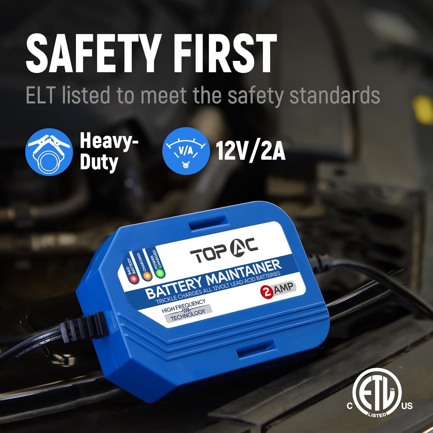 - Automatic Charging: 12V 2-Amp 3-stage battery charger. During charging, our maintainer will keep the batteries in the best conditions, automatically adjust the charge rate as battery becomes charged, and stop when the battery is fully charged