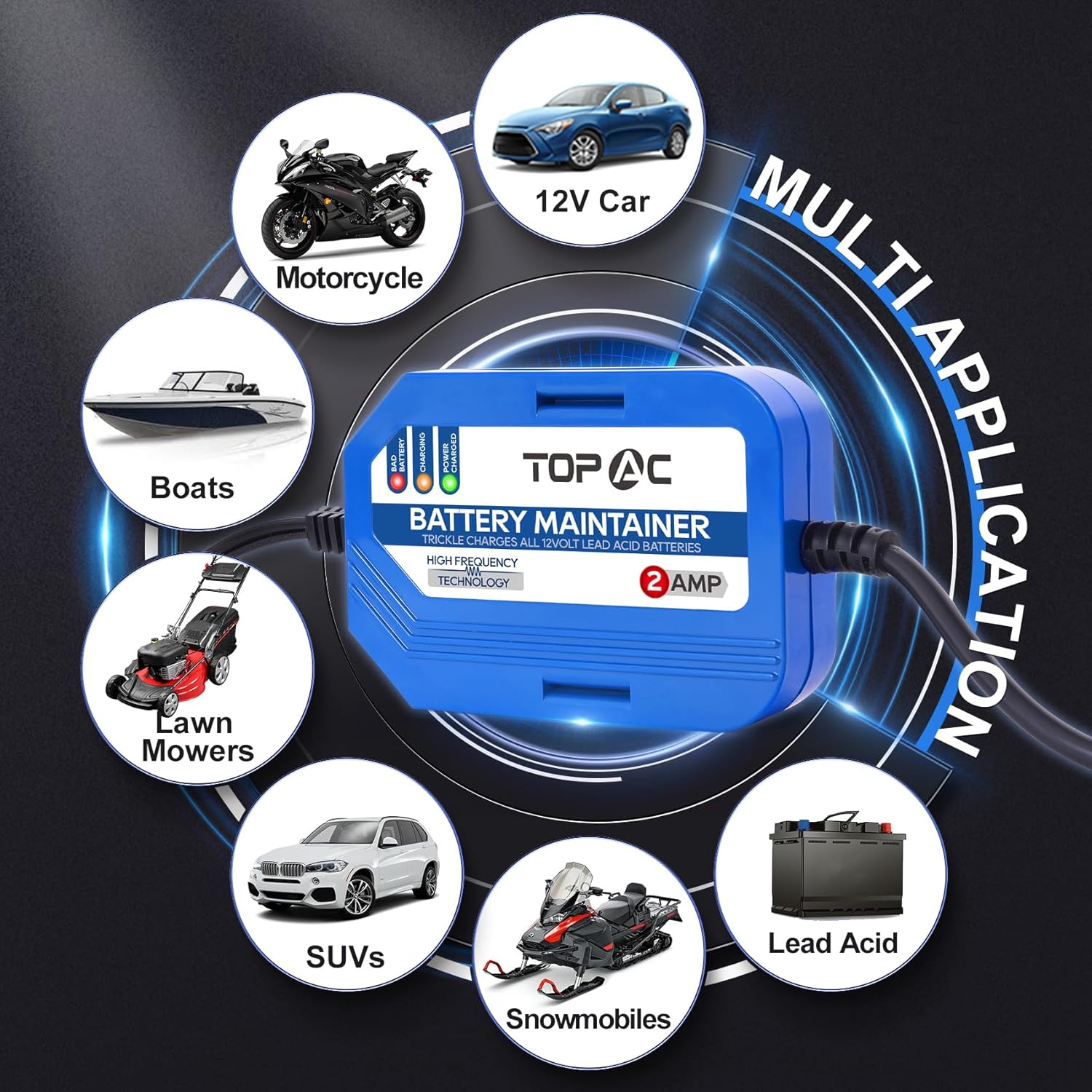 - Wide Application: Charge or repair all 12-volt lead-acid automotive batteries including Lead-Acid, AGM, GEL, STD, ideal for motorcycles, cars, SUVs, pick up tracks, boats,lawn mowers, snowmobiles and more
