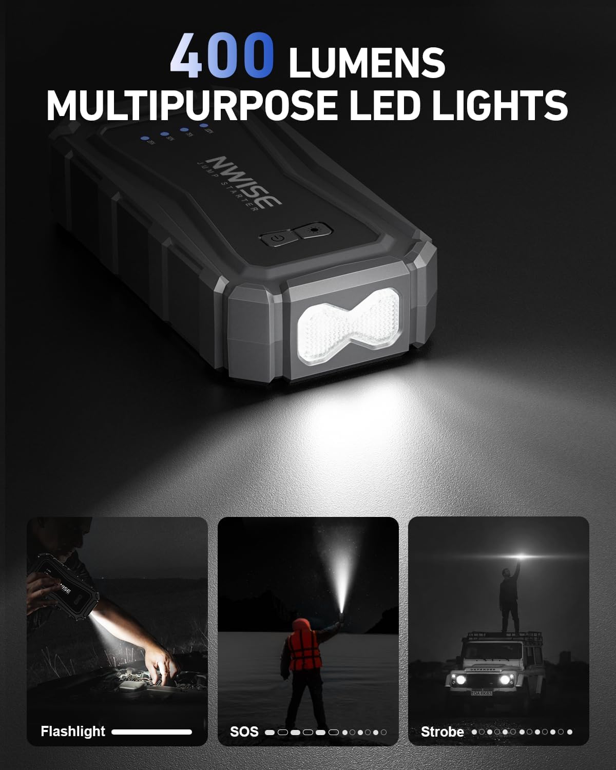 NWISE Car Jump Starter, 6000A Peak 25800mAh Portable Battery Starter (Up to 10L Gas or 8L Diesel Engine) with Smart Safety Jumper Clamps,12V Jump Boxes with 45W Fast Charging