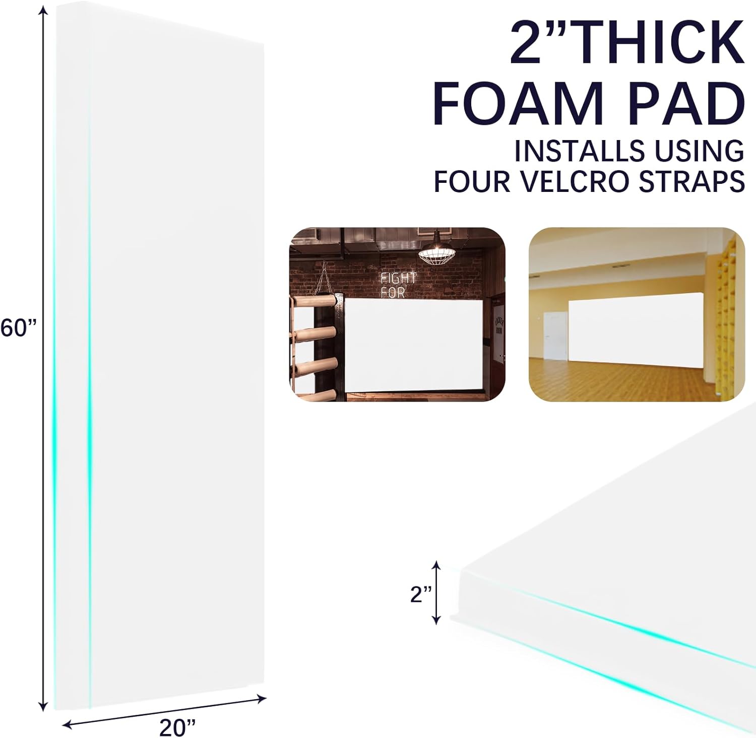 - 💯【Extensive coverage and value】 : Each package includes one smooth white sports protective wall pads, providing a total coverage area of 8.33 square feet. With pad sizes of 60"x 20"x 2" they can accommodate various wall sizes, ensuring comprehensive protection.