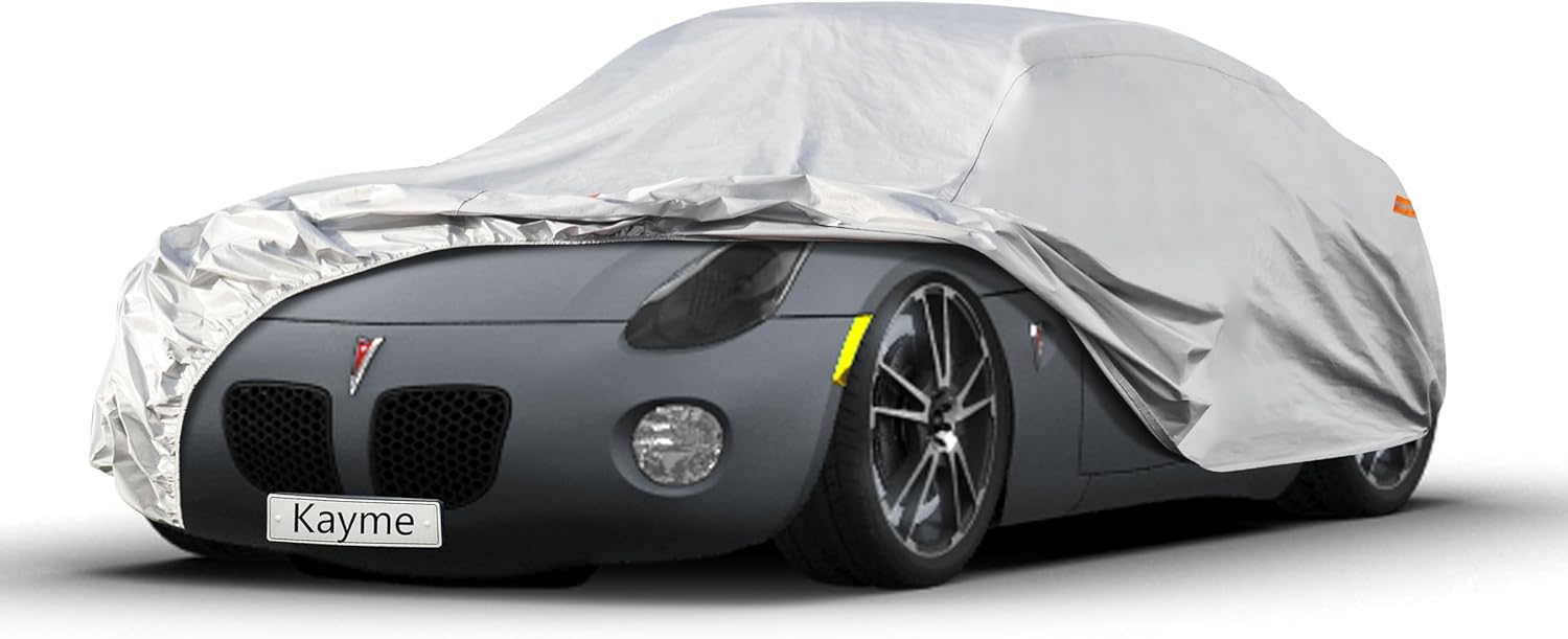 Kayme 6 Layers Car Cover Custom Fit for Pontiac Solstice (2005-2009) Waterproof All Weather for Automobiles, Outdoor Full Cover Rain Sun UV Protection.Silver