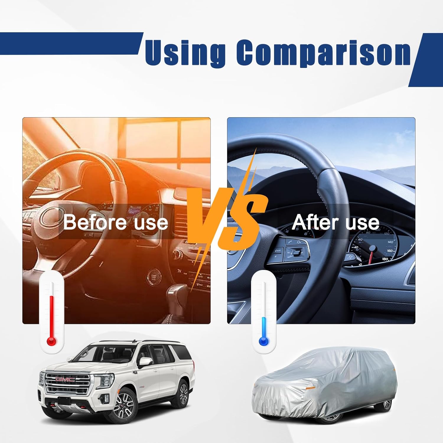 Kayme 6 Layers SUV Car Cover Custom Fit for GMC Yukon XL (2000-2025) Waterproof All Weather for Automobiles, Outdoor Full Cover Rain Sun UV Protection.Silver