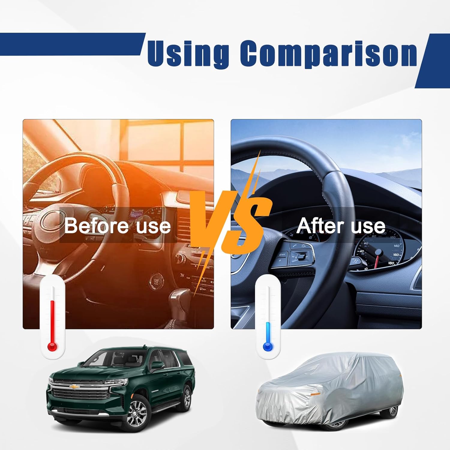 Kayme 6 Layers SUV Car Cover Custom Fit for Chevrolet Chevy Suburban (1973-2025) Waterproof All Weather for Automobiles, Outdoor Full Cover Rain Sun UV Protection.Silver