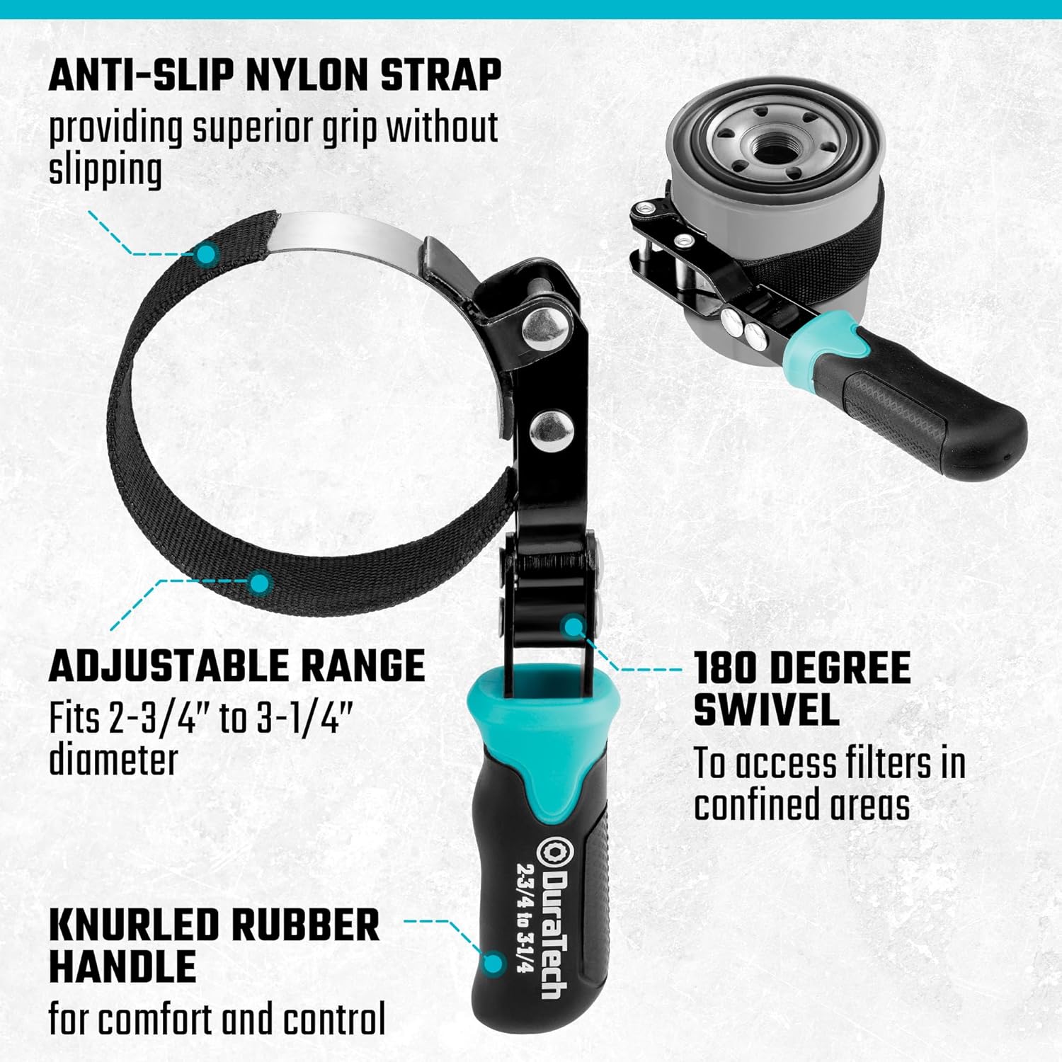DURATECH Anti-Slip Small Swivel Oil Filter Wrench, Oil Filter Removal Tool Fits Filters 2-3/4" to 3-1/4", Perfect for Car Repair Tools