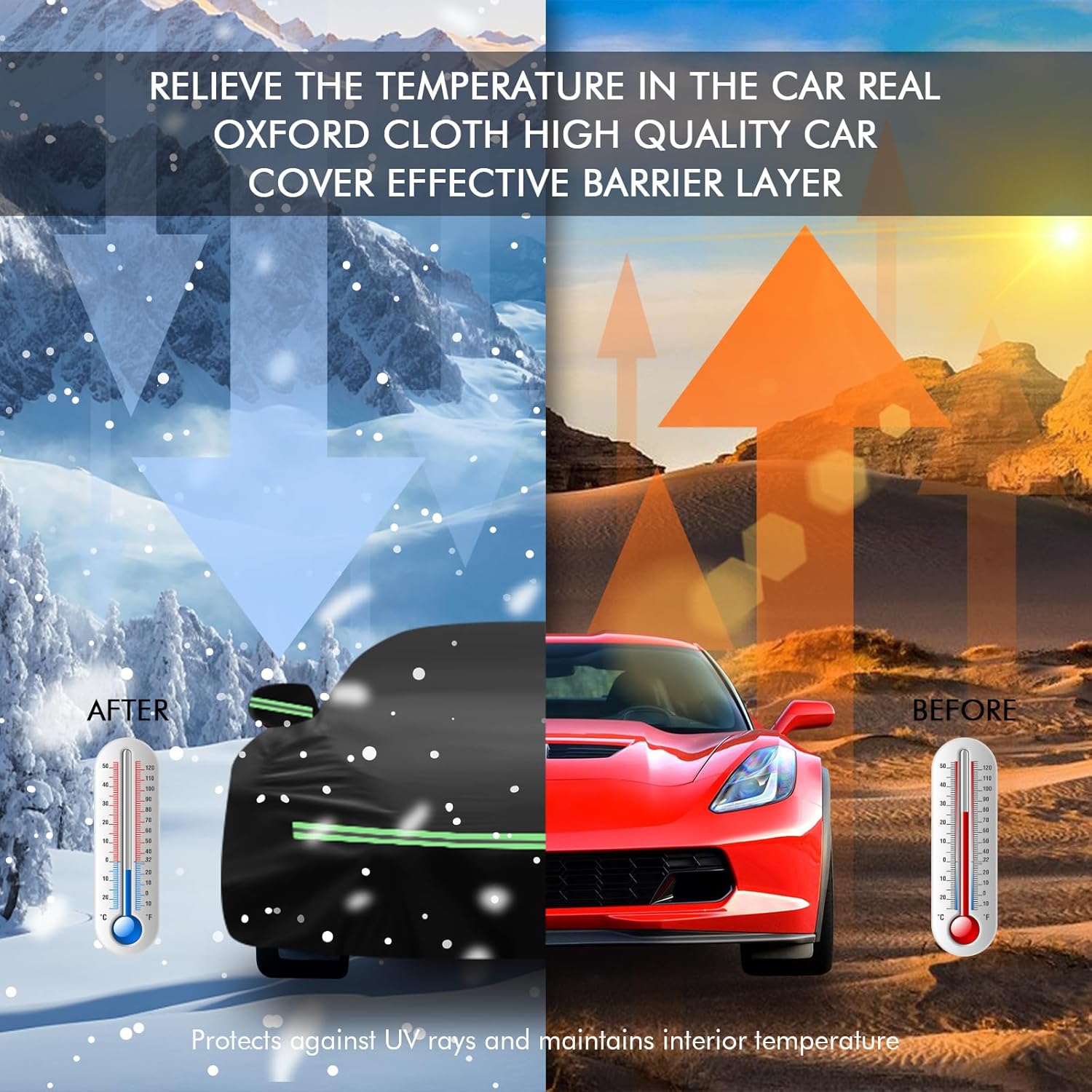 - 🚘【Premium Material】The car cover for Corvette C7 is made of heavy-duty 210D Oxford cloth and waterproof silver-plated fabric, and has multi-layer cotton coating, which can be windproof, dustproof, UV-proof, sun-proof, not easy to tear, and withstand water pressure up to 1600mm. The inner layer also has a thickened cotton backing, which not only fully prevents the paint from being scratched, but also has thermal insulation, which is warm in winter and cool in summer.