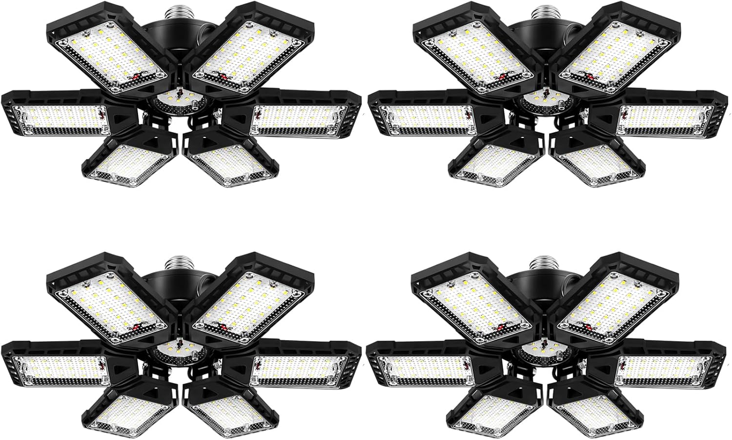 LED Garage Lights 4 Pack -180W, 18000LM 6500K Led Shop Light with 6+1 Deformable Panels, Basement Barn Light Garage Ceiling Lights, E26/E27 for Garages, Warehouse, Shop