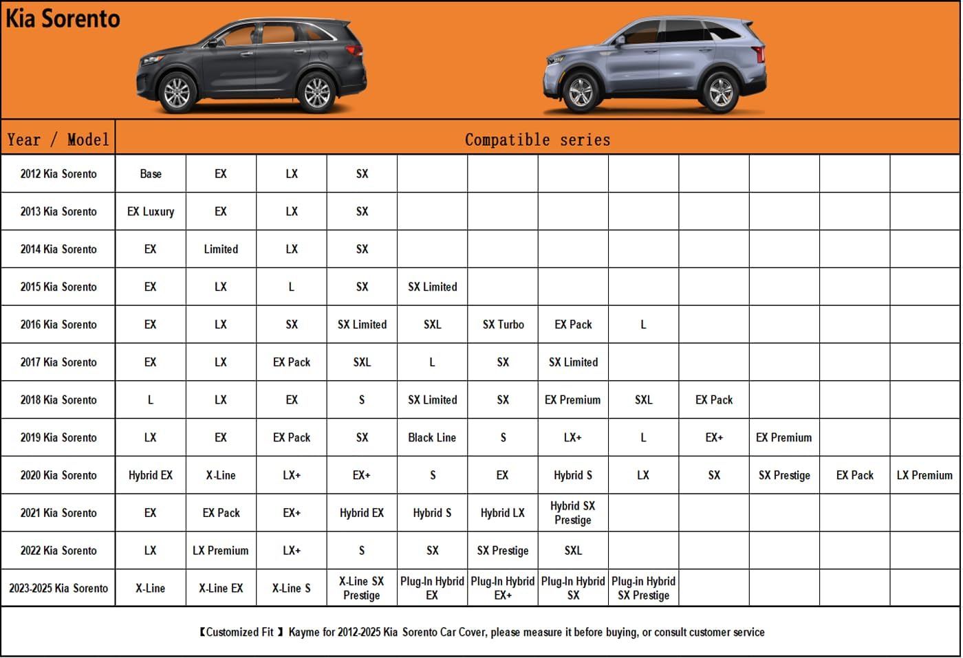 - ăSuitable forăâ Custom fit for Kia Sorento (2012-2025). Come with a large enough portable bag to store your cover when you do not use