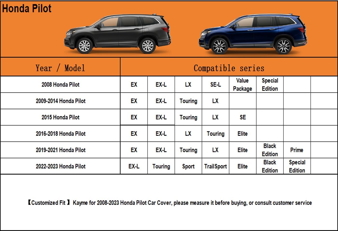 - ăSuitable forăâ Custom fit for Honda Pilot ïŒ2008-2025) . Come with a large enough portable bag to store your cover when you do not use