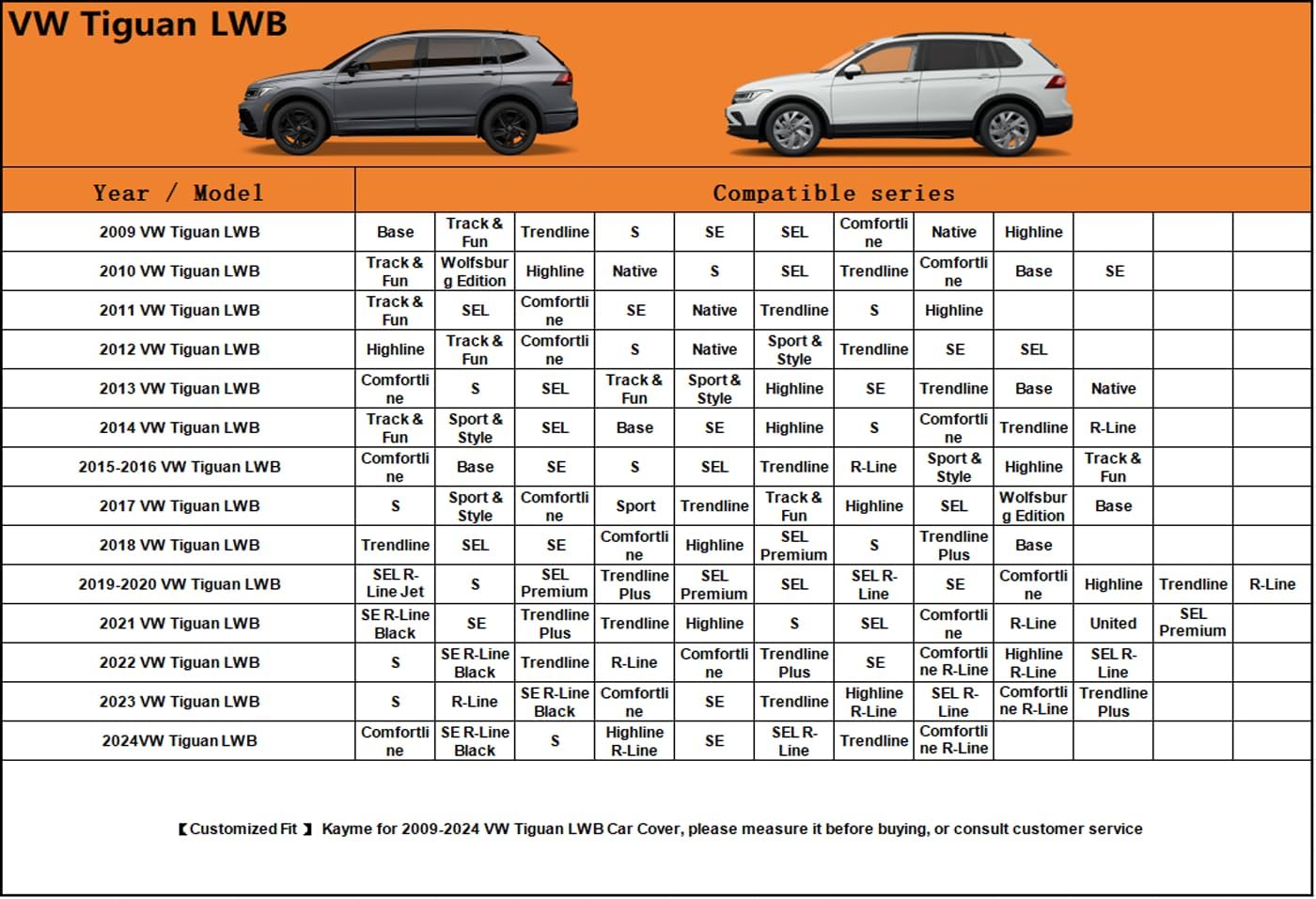 - ăSuitable forăâ Custom fit for Volkswagen Tiguan LWB (2018-2025). Come with a large enough portable bag to store your cover when you do not use