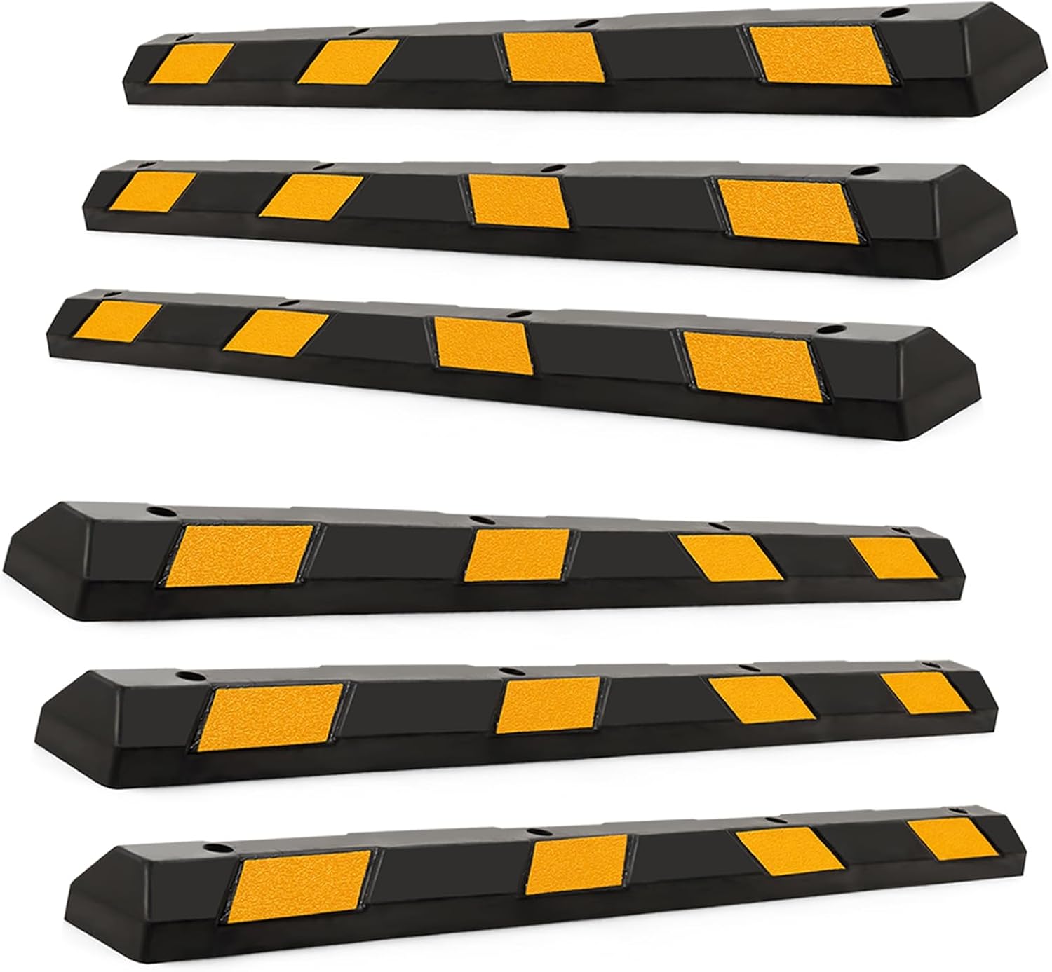 IRONMAX Parking Stopper for Garage, 72" Long Rubber Curb with Yellow Reflective Stripes, Heavy Duty Parking Block Garage Wheel Stop for Car, Truck, RV, Trailer (6 Pack)