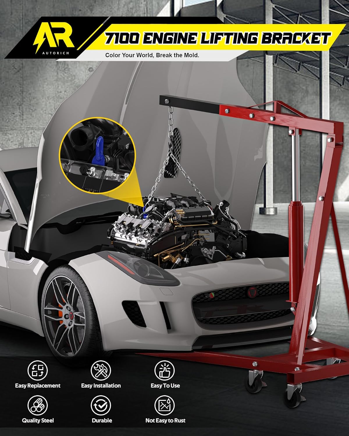 - [Stylish Workshop] The AUTORICH 7100 Lifting Bracket Set is the epitome of strength and style, and now it comes in four vibrant colors β black, red, orange, and blue. These lively color options not only add a dash of vibrancy but also elevate the visual appeal of your workspace. No more dull and monotonous tasks β now you can work with a touch of cheerfulness