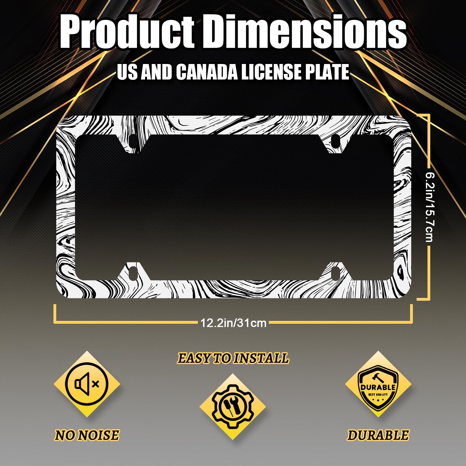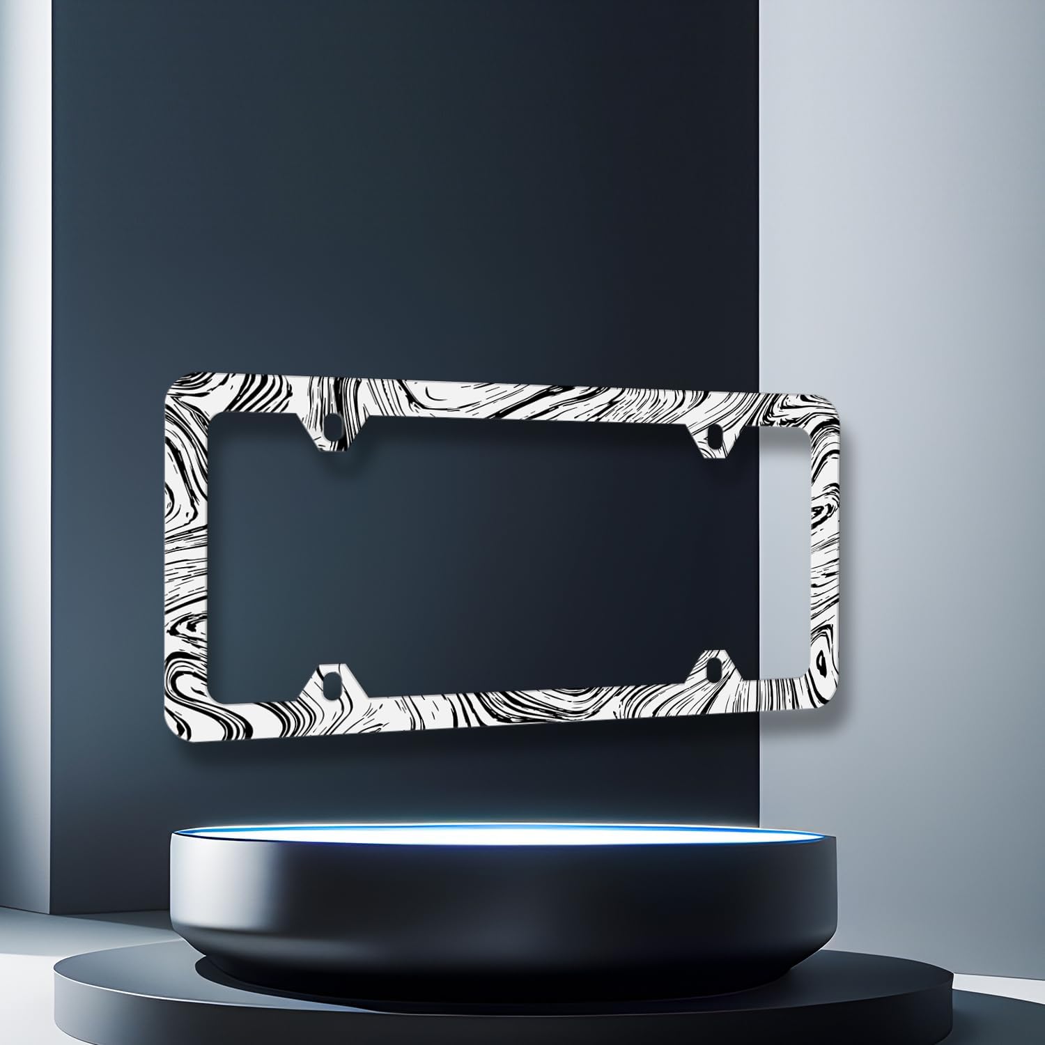 Abstract Marble Print License Plate Frame Wood Texture Marble License Plate Stainless Steel Colorful Car Accessory Funny License Plate Decoration Men Women Size 12.2"x6.2" with Screws