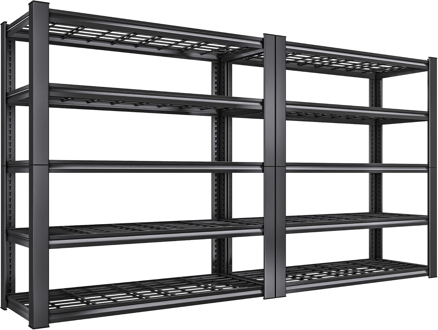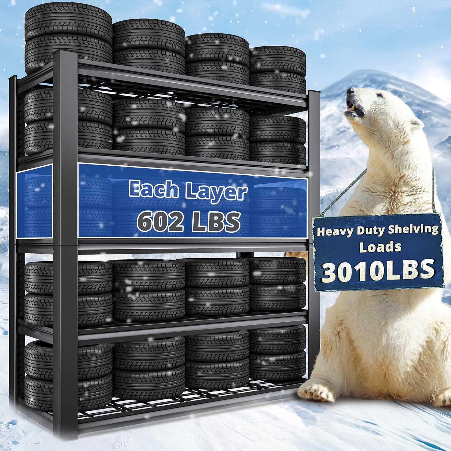 - 【3010LBS Extremely Sturdy】This garage shelving heavy duty has thickened legs. Every solid thickened metal shelf with extra stiffener can hold up to 602 lbs, a total of 3010 lbs bearing capacity gives you good storage experience. No matter how much weight you put on it, the garage storage shelves heavy duty will not wobble or shake