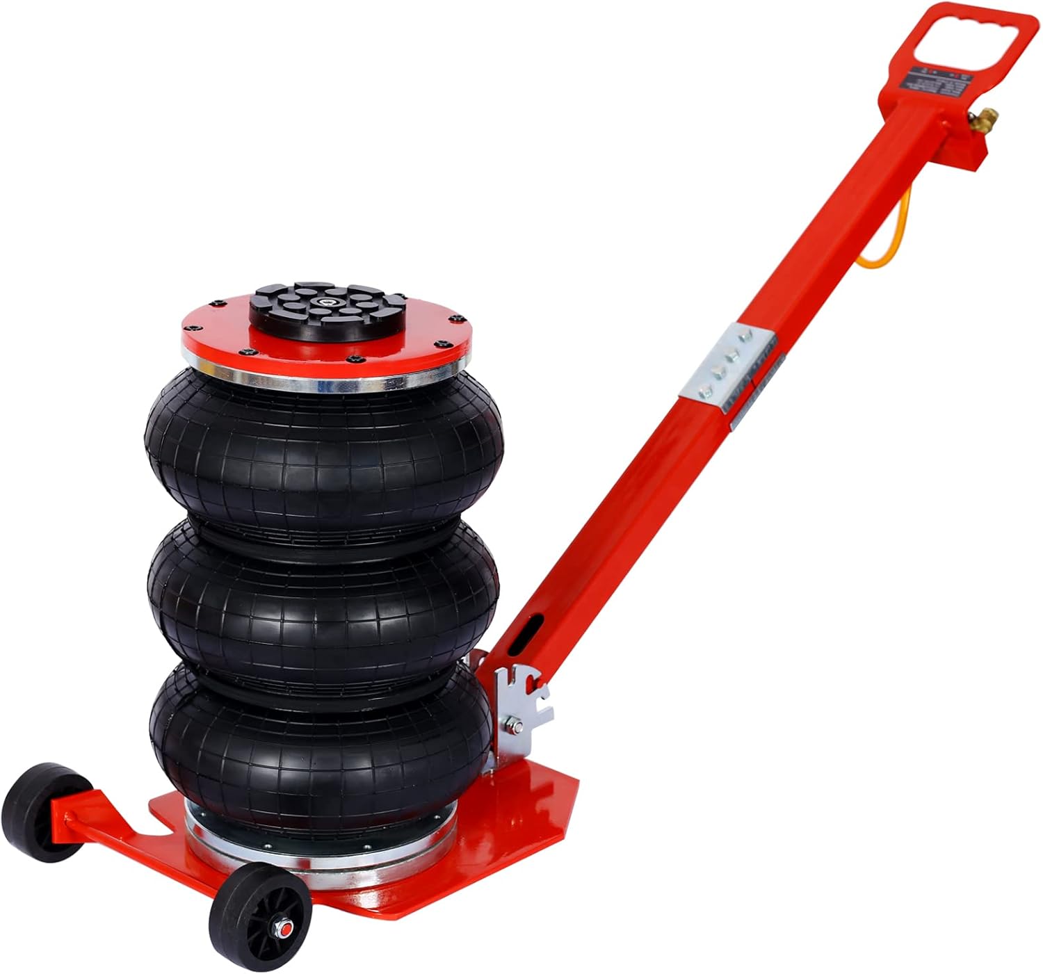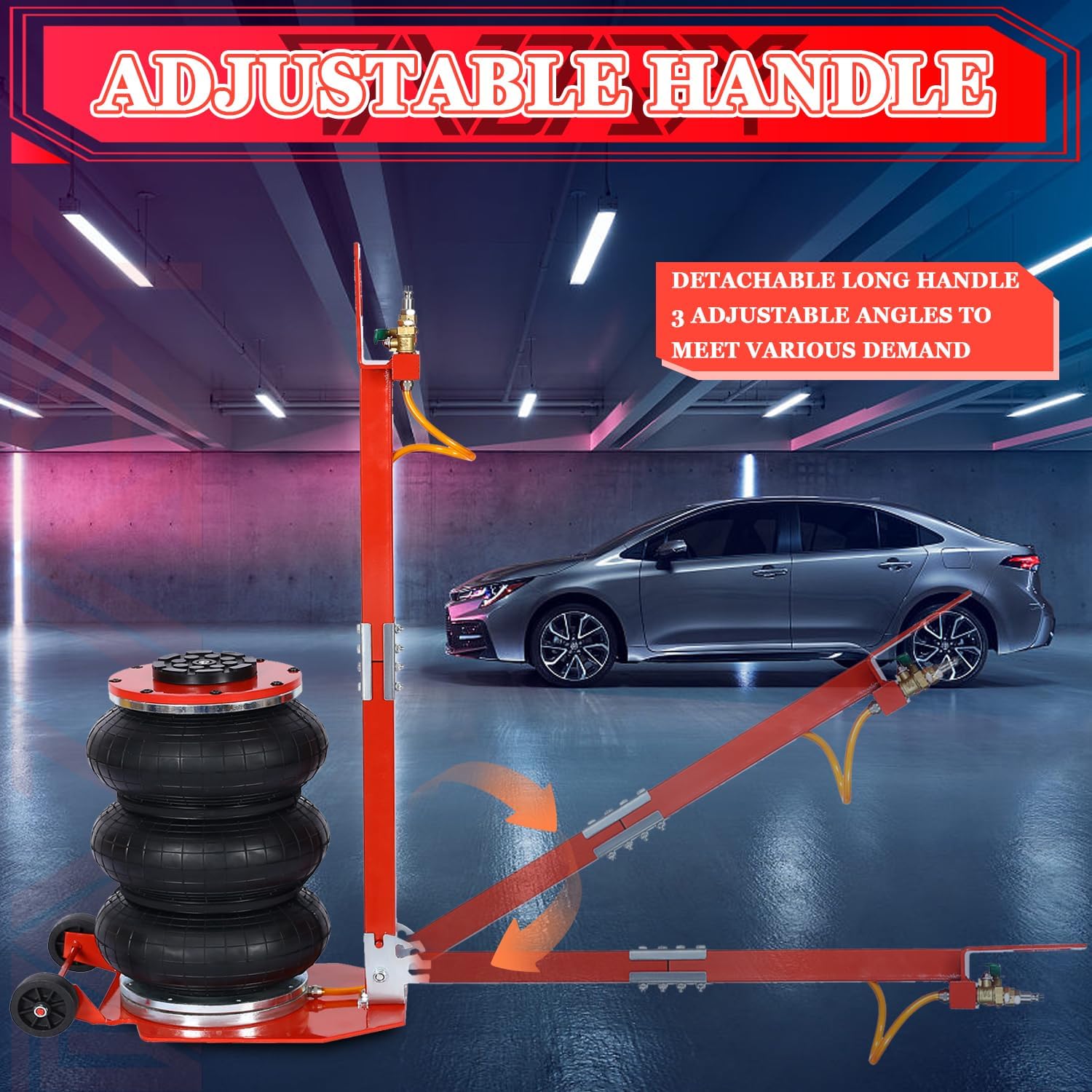 3T Triple Bag Air Jack 6600lbs Pneumatic Jack 3s Fast Lift Up 16in Airbag Jack with Adjustable Long Handle Heavy Duty Triple Air Bag Jack Lift for Cars Garage (Red)